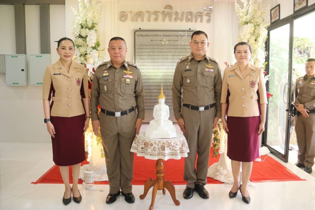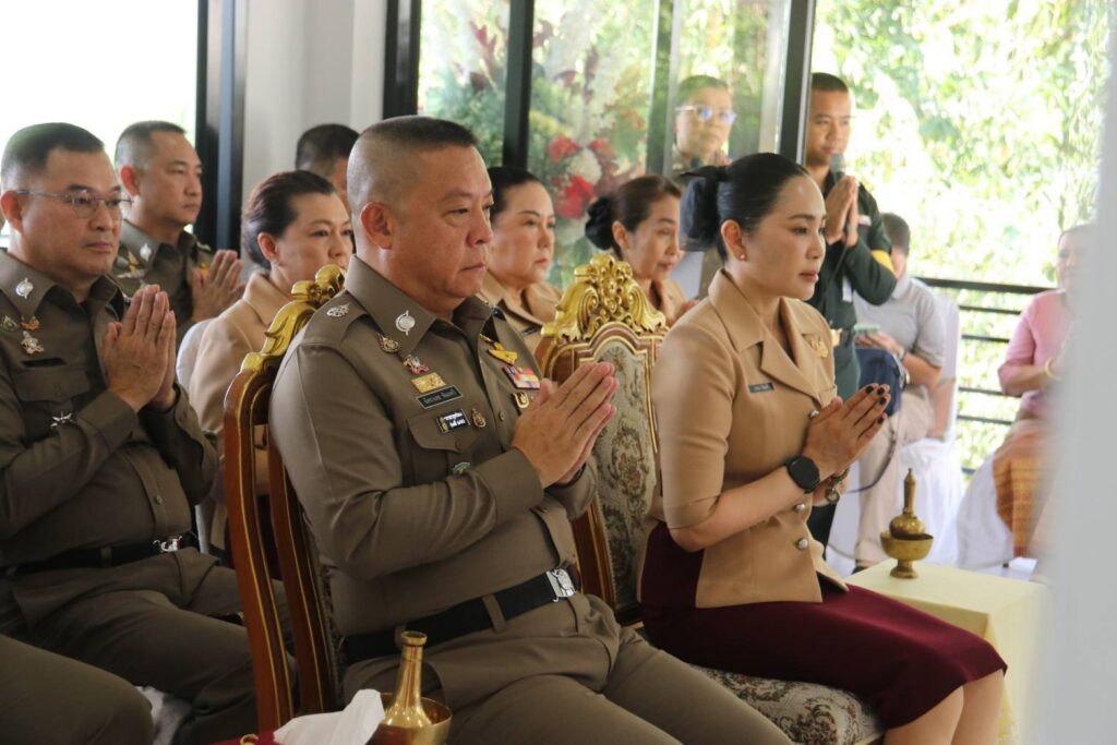 คุณภคมน พิมลศรี อุปนายกสมาคมแม่บ้านตำรวจเป็นประธานในพิธีทำบุญเพื่อเป็นสิริมงคลและเปิดป้ายอาคารสำนักงาน (Cop’s Valley view) พร้อมด้วย พล.ต.ต.ทิฆัมพร ศรีสังข์ ผู้ทรงคุณวุฒิ ตร.,พ.ต.อ.ศราวุธ สวัสดิชัย รอง ผบก.ภ.จว.ปทุมธานี/หน.สง.ฯ