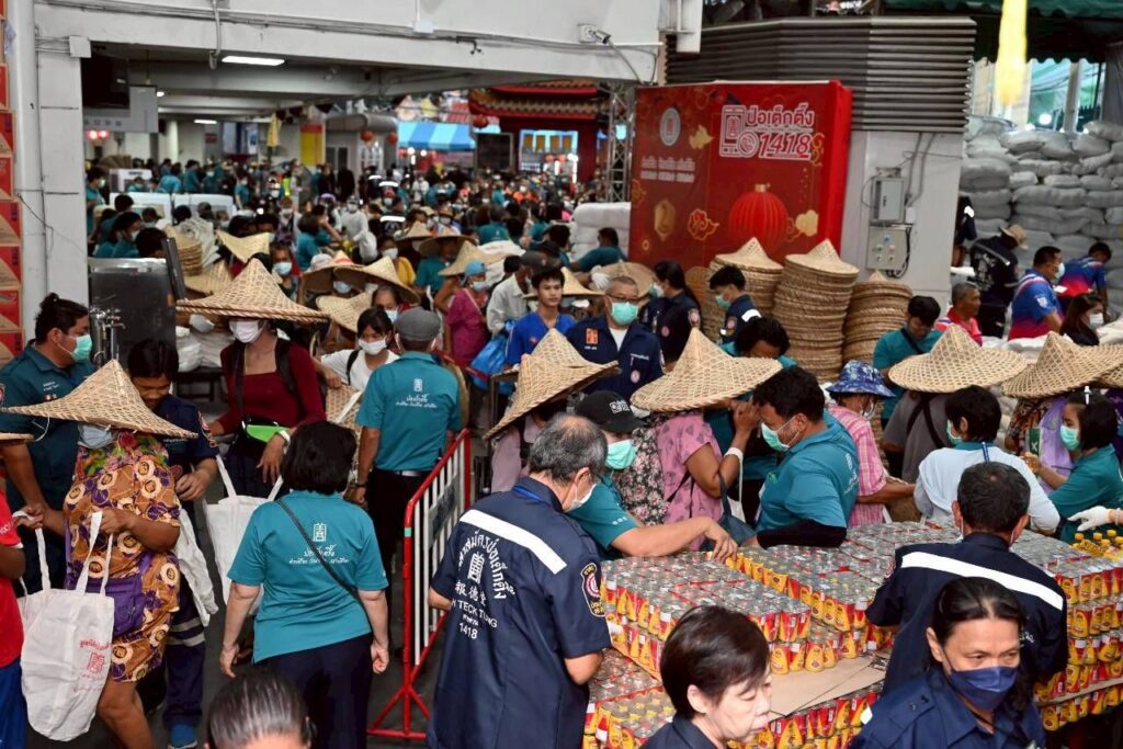 วันศุกร์ที่ 19 กันยายน พ.ศ.2568 เวลา 09.00 น. มูลนิธิป่อเต็กตึ๊ง นำโดย ดร.สุทัศน์ เตชะวิบูลย์ รองประธานกรรมการฯ,นายวิชิต ชินวงศ์วรกุล รองประธานกรรมการฯ,นายวิรุฬ เตชะไพบูลย์ ที่ปรึกษาประธานกรรมการฯ,นางศิริกุล โอภาสวงศ์ กรรมการและเลขาธิการฯ พร้อมด้วยคณะกรรมการ และผู้ช่วยกรรมการมูลนิธิฯ จัดพิธีแจกเครื่องอุปโภคบริโภค เนื่องในงานประเพณีทิ้งกระจาด ประจำปี 2568 ณ มูลนิธิป่อเต็กตึ๊ง พลับพลาไชย กรุงเทพฯ (จังหวัดที่ 3) กว่า 12,000 ชุด ให้แก่ประชาชนผู้ยากไร้ทั้งในกรุงเทพฯ และต่างจังหวัดที่เดินทางมารอรับกันอย่างเนืองแน่น พร้อมมอบค่าพาหนะคนละ 200 บาท ซึ่งในปีนี้จัดเพิ่มขึ้นกว่าปีที่ผ่านมาทั้งชุดเครื่องอุปโภคบริโภคและค่าพาหนะ เพื่อเป็นการช่วยเหลือผู้ยากไร้ สอดรับกับปริมาณผู้ที่มารอรับและค่าครองชีพในปัจจุบันที่เพิ่มขึ้น โดยสิ่งของที่แจกประกอบด้วย ข้าวสาร ปลากระป๋อง บะหมี่กึ่งสำเร็จรูป น้ำปลา น้ำมันพืช ขนม เสื้อผ้า รองเท้าแตะฟองน้ำ ฯลฯ บรรจุถุงผ้ามูลนิธิฯ โดยมี แพทย์หญิงวันทนีย์ วัฒนะ ปลัดกรุงเทพมหานคร เป็นประธานในพิธี พร้อมด้วย ดร.เสาวนีย์ เตชะไพบูลย์ ภริยาประธานกรรมการ แขกผู้มีเกียรติ ผู้แทนหน่วยงานในเครือมูลนิธิฯ อาสาสมัครกิตติมศักดิ์ และอาสาสมัครศิลปิน อาทิ นางสาวจิตรามณฑน์ เตชะไพบูลย์ ดร.ปภัสรา เตชะไพบูลย์ นางศิริพร โอภาสวงศ์ นางศิริวรรณ โอภาสวงศ์ และนายพลภัทร เตชะหรูวิจิตร ร่วมในพิธี ณ มูลนิธิป่อเต็กตึ๊ง พลับพลาไชย กรุงเทพฯ