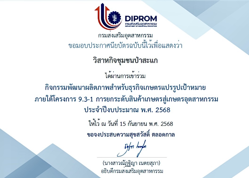 ที่ศูนย์ส่งเสริมอุตสาหกรรมภาคที่ 8 กรมส่งเสริมอุตสาหกรรม ได้จัด สัมมนาสรุปผลและพิธีปิด โครงการ 3.2-1 การยกระดับสินค้าเกษตรสู่เกษตรอุตสาหกรรม ประจำปีงบประมาณ 2568 ผ่านระบบ Google Meeting พร้อมมอบโล่รางวัลแก่สถานประกอบการที่ประสบความสำเร็จ (Success Case) และประกาศนียบัตรแก่ผู้ประกอบการที่เข้าร่วมกิจกรรมพัฒนาผลิตภาพสำหรับธุรกิจเกษตรแปรรูปเป้าหมาย