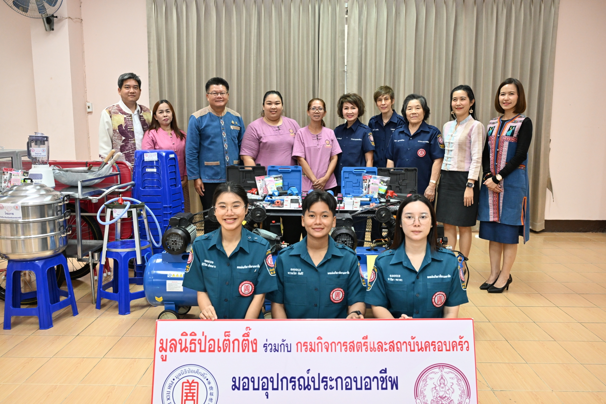 นางศิริกุล โอภาสวงศ์ กรรมการและเลขาธิการฯ เปิดเผยว่า โครงการ ส่งเสริมอาชีพเพื่อสตรีและครอบครัว มูลนิธิป่อเต็กตึ๊ง มีวัตถุประสงค์ เพื่อมอบวัสดุอุปกรณ์ประกอบอาชีพ แก่ สตรี บุรุษ พ่อเลี้ยงเดี่ยว ผู้ด้อยโอกาสทางสังคม หรือผู้ที่มีความหลากหลายทางเพศ ที่มีความรู้และความสามารถ ขาดแคลนวัสดุอุปกรณ์ในการประกอบอาชีพ โดยได้รับความร่วมมือจากศูนย์เรียนรู้การพัฒนาสตรีและครอบครัวและสถานคุ้มครองและพัฒนาอาชีพ จำนวน 12 แห่ง ได้แก่ กรุงเทพมหานคร นนทบุรี ชลบุรี สงขลา สุราษฎร์ธานี นครราชสีมา ศรีสะเกษ ขอนแก่น ลำพูน ลำปาง เชียงราย และพิษณุโลก คัดกรองผู้ที่ผ่านการฝึกอบรม เสริมทักษะอาชีพ ส่งมาให้มูลนิธิฯ พิจารณาตามเกณฑ์ที่กำหนดไว้ โดยมูลนิธิฯ หวังเป็นอย่างยิ่งว่า การดำเนินการโครงการดังกล่าวนี้ จะมีส่วนสนับสนุน ช่วยสร้างอาชีพ สร้างรายได้ เลี้ยงตนเองและครอบครัว ลดปัญหาความเหลื่อมล้ำในสังคม สร้างความสุขสู่ครอบครัว ชุมชน สังคม และประเทศชาติอย่างยั่งยืนต่อไป