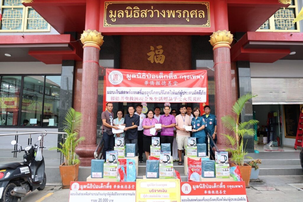 เมื่อวันอังคารที่ 7 ตุลาคม พ.ศ.2568 : มูลนิธิป่อเต็กตึ๊ง นำโดย นางศิริพร กระจ่างหล้า ผู้จัดการฝ่ายสังคมสงเคราะห์ฯ พร้อมด้วย นายรัชพร ประสงค์ทรัพย์ หัวหน้าแผนกสาธารณภัยฯ นำทีมเจ้าหน้าที่แผนกสาธารณภัย ฝ่ายสังคมสงเคราะห์ฯ ลงพื้นที่ให้ความช่วยเหลือผู้ประสบอัคคีภัยบริเวณตำบลท่าประดู่ อำเภอเมือง จังหวัดระยอง จำนวน 6 ครอบครัว 9 คน โดยมอบเงินสดคนละ 3,500 บาท พร้อมมอบเครื่องอุปโภคบริโภครายครอบครัว จำนวน 3 ชุด รายบุคคล จำนวน 3 ชุด และมอบเงินช่วยเหลือค่าฌาปนกิจแก่ครอบครัวผู้เสียชีวิตรายละ 20,000 บาท รวม 7 ราย รวมมูลค่าการช่วยเหลือทั้งสิ้น 183,500 บาท นอกจากนี้ มูลนิธิสว่างพรกุศล จังหวัดระยอง ร่วมมอบเงินค่าฌาปนกิจแก่ครอบครัวผู้เสียชีวิต รายละ 10,000 บาท รวมการช่วยเหลือทั้ง 2 องค์กรคิดเป็นมูลค่าทั้งสิ้น 253,500 บาท (สองแสนห้าหมื่นสามพันห้าร้อยบาทถ้วน) โดยมี นายอนุสรณ์ แสงกล้า นายอำเภอเมืองระยอง พร้อมด้วย คณะมูลนิธิสว่างพรกุศล จังหวัดระยอง เป็นผู้ประสานและร่วมในพิธี ณ บริเวณมูลนิธิสว่างพรกุศล จังหวัดระยอง