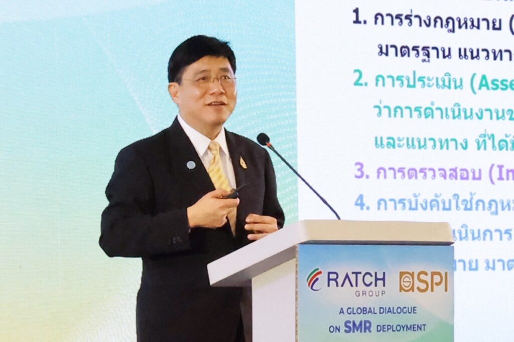นายแพทย์รุ่งเรือง กิจผาติ อธิบดีกรมวิทยาศาสตร์บริการ รรท. เลขาธิการสำนักงานปรมาณูเพื่อสันติ (ปส.) กระทรวงการอุดมศึกษา วิทยาศาสตร์ วิจัยและนวัตกรรม (อว.) เปิดเผยภายหลังร่วมบรรยายพิเศษในหัวข้อ “ความก้าวหน้าด้านกฎหมายและมาตรฐานต่างๆ เพื่อรองรับการพัฒนาเทคโนโลยี SMR ในประเทศไทย“ บนเวทีสัมมนาระดับชาติ “A Global Dialogue on SMR Deployment” ในวันที่ 16 กรกฎาคม 2568 จัดขึ้นโดย บริษัท ราช กรุ๊ป จำกัด (มหาชน) ร่วมกับ บริษัท สหพัฒนาอินเตอร์โฮลดิ้ง จำกัด (มหาชน) ณ ศูนย์ประชุมแห่งชาติสิริกิติ์ ว่า ภายใต้นโยบายของกระทรวง (อว.) ที่มุ่งขับเคลื่อนวิทยาศาสตร์และเทคโนโลยีขั้นสูงสู่การพัฒนาประเทศชาติอย่างยั่งยืน (ปส.) ในฐานะหน่วยงานด้านการกำกับดูแลความปลอดภัยทางนิวเคลียร์และรังสีของประเทศไทย ซึ่งมีความสำคัญในการร่วมเตรียมความพร้อมอย่างรอบด้านในการรองรับโรงไฟฟ้านิวเคลียร์มาตรฐานปลอดภัยขนาดเล็ก (Small Modular Reactor: SMR) เพื่อเสริมความมั่นคงด้านพลังงาน และเป็นทางเลือกสำคัญในการเปลี่ยนผ่านสู่สังคมคาร์บอนต่ำของไทย โดยงานนี้ได้รับเกียรติจากนายประเสริฐ สินสุขประเสริฐ ปลัดกระทรวงพลังงาน เป็นประธานและองค์ปาฐกพิเศษในหัวข้อ “อนาคตของความมั่นคงทางพลังงาน” และผู้ทรงคุณวุฒิด้าน SMR มาร่วมให้ข้อมูลและแลกเปลี่ยนประสบการณ์มากมาย ได้แก่ มส.ชาลอต นิโคลส์ สมาชิกรัฐสภาอังกฤษและประธานร่วมกลุ่มสมาชิกรัฐสภาว่าด้วยพลังงานนิวเคลียร์ สหราชอาณาจักร มร.ไซมอน สตัทฟอร์ด ผู้บริหารระดับสูง Castletown Law จากสหราชอาณาจักร มร.โทรุ อิโตะ ผู้จัดการทั่วไป ฝ่ายจัดการโครงการ บริษัท ฮิตาชิ-จีอี เวอร์โนวา นิวเคลียร์ เอ็นเนอร์ยี่ จำกัด มร.เฉิน ฟางจุน ผู้แทนประจำประเทศไทย มาเลเซีย และเวียดนาม บริษัท ไชน่า เนชั่นแนล นิวเคลียร์ คอร์ปอเรชั่น และ มร.อเล็กซิส ออนเนอร์ ผู้จัดการฝ่ายพัฒนาธุรกิจ โรลส-รอยส์ SMR