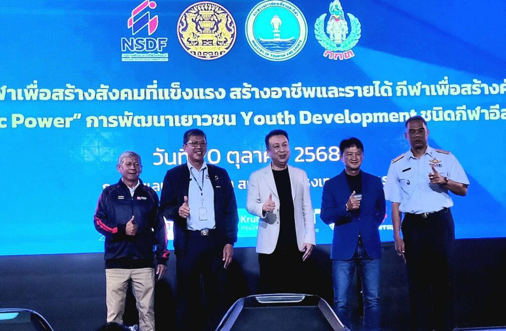 วันที่ 20 ตุลาคม 2568 : สมาคมกีฬาอีสปอร์ตแห่งประเทศไทย โดยนาย สันติ โหลทอง นายกสมาคมฯ จัดงานแถลงข่าวเปิดตัว “โครงการกีฬาเพื่อสร้างสังคมที่แข็งแรง สร้างอาชีพและรายได้ กีฬาเพื่อสร้างศักยภาพของประเทศ “Domestic Power” การพัฒนาเยาวชน Youth Development ประจำปี 2568” ชนิดกีฬาอีสปอร์ต ขึ้นที่ Thailand Esports Staium เมื่อวันที่ 20 ตุลาคม 2568