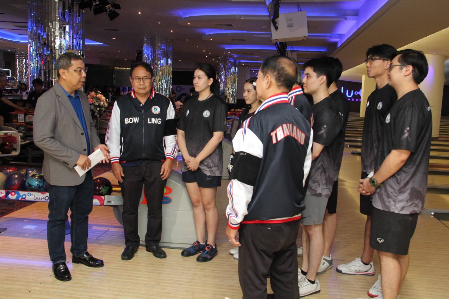 จากนั้นได้เดินทางไปที่ บลูโอ ริธึม แอนด์ โบว์ล เมเจอร์ รัชโยธิน เยี่ยมชมการฝึกซ้อมของนักกีฬาโบว์ลิ่งทีมชาติไทย โดยมี วิวัฒน์ชัย รัตนะรัต ผู้จัดการทีมและ อุปนายกสมาคมกีฬาโบว์ลิ่งแห่งประเทศไทย,วีรยุทธ จอมใจเหล็ก กรรมการบริหารสมาคมกีฬาโบว์ลิ่งแห่งประเทศไทย,โค้ชคิม อุย ยัง ผู้ฝึกสอนชาวเกาหลีใต้,บดินทร์ เลิศพิริยะสกุลกิจ ผู้ฝึกสอน,สุรศักดิ์ มานุวงศ์ ผู้ฝึกสอน และนักกีฬาโบว์ลิ่งทีมชาติไทย ชาย 4 คน หญิง 4 คนให้การต้อนรับ