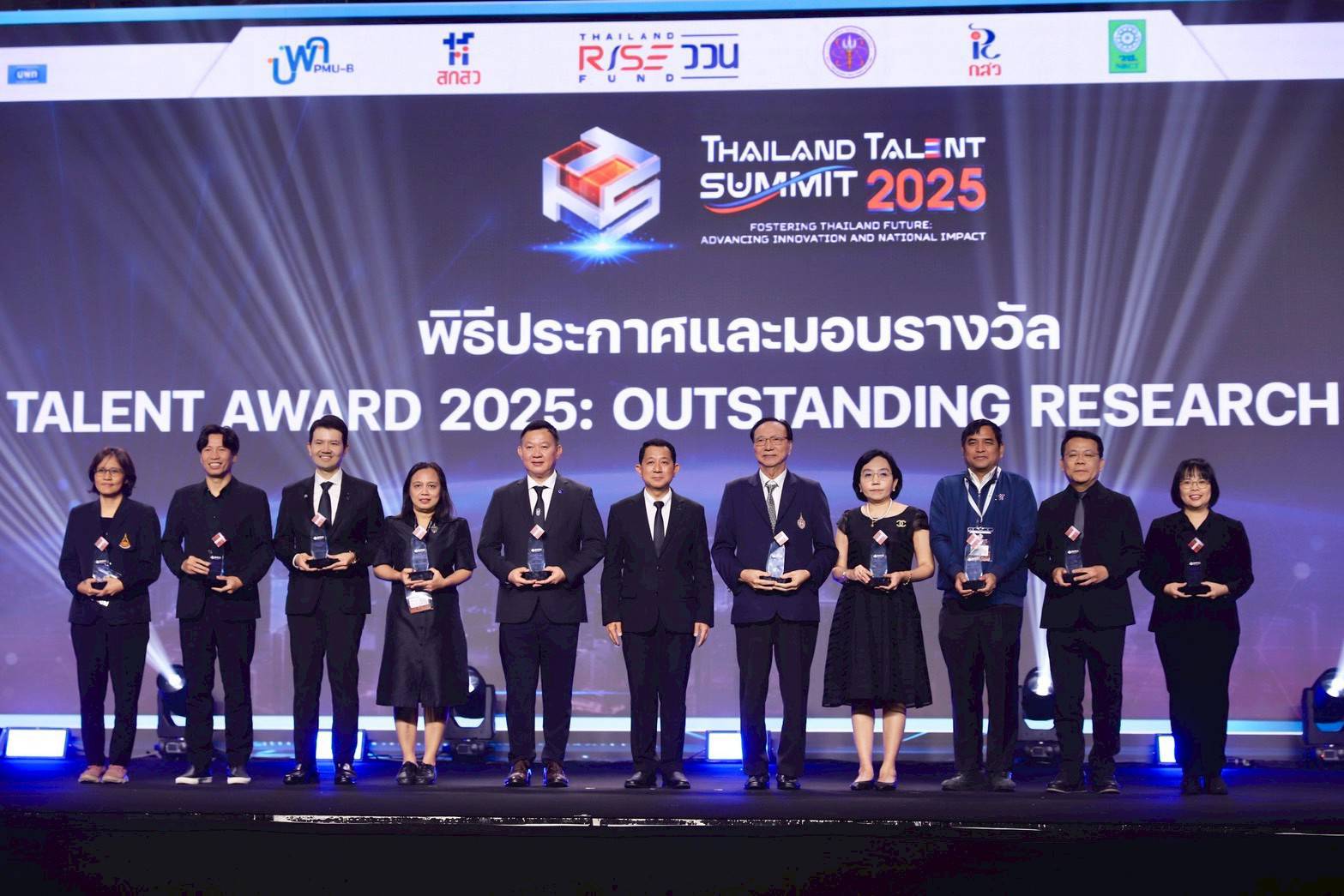 ในโอกาสนี้ (วศ.) ได้รับรางวัล Thailand Talent Award 2025 : Outstanding Research Organization ซึ่งเป็นหนึ่งใน 10 หน่วยงานด้าน (ววน.) ของประเทศที่เป็นแบบอย่างด้านการบริหารจัดการงานวิจัยและนวัตกรรม มีความโดดเด่นด้านการพัฒนาศักยภาพบุคลากร การสร้างเครือข่ายความร่วมมือ และการผลักดันผลงานวิจัยสู่การใช้ประโยชน์เพื่อสร้างผลลัพธ์และผลกระทบระดับประเทศ โดยภายในงาน (วศ.) ได้ร่วมจัดแสดงนิทรรศการเพื่อตอกย้ำความสำเร็จในการต่อยอดงานวิจัยสู่การใช้ประโยชน์อย่างเป็นรูปธรรม ประกอบด้วย
