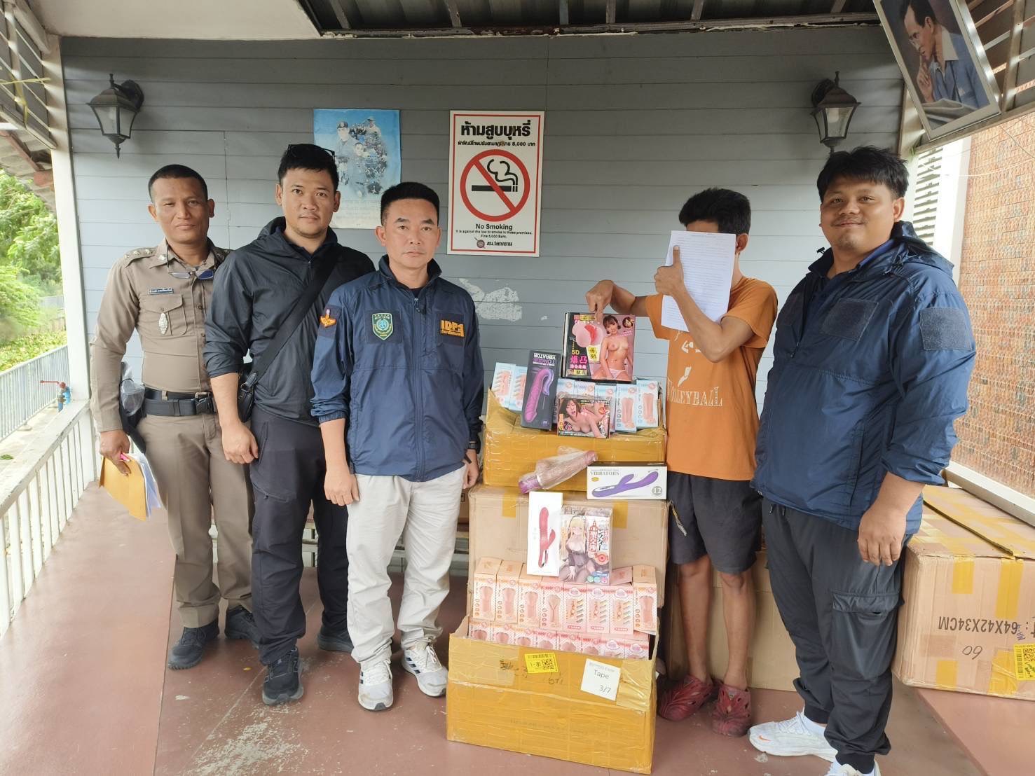 ผลการตรวจค้นพบของกลางเป็นอุปกรณ์ลามกอนาจารจำนวน 256 รายการ มูลค่ารวมกว่า 768,000 บาท ประกอบด้วย