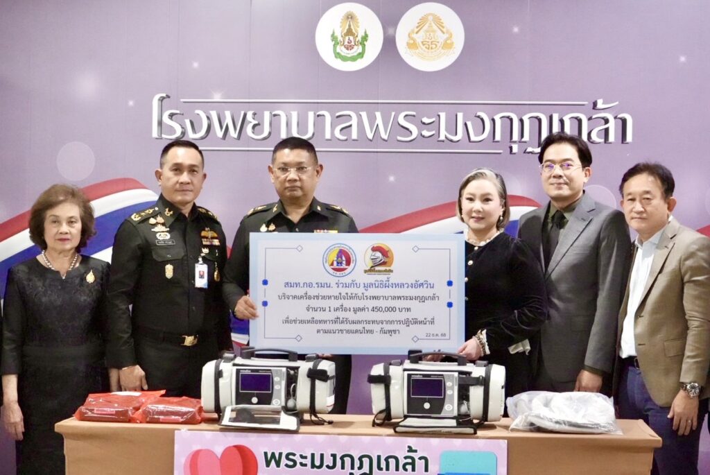 กอ.รมน. ผนึกพลังภาคประชาชน เสริมขีดความสามารถแพทย์ทหาร ส่งต่อความห่วงใยถึงกำลังพลแนวหน้าชายแดนไทย–กัมพูชา ล่าสุดมอบเครื่องช่วยหายใจให้โรงพยาบาลพระมงกุฎเกล้า เพิ่มศักยภาพดูแลผู้ป่วยวิกฤตจากภารกิจความมั่นคง