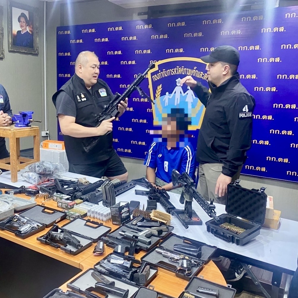 ของกลางที่ตรวจยึดได้ ประกอบด้วยอาวุธปืนเล็กยาว 3 กระบอก, ปืนพก (รวมไทยประดิษฐ์และแบลงค์กัน) 11 กระบอก, เครื่องกระสุนกว่า 450 นัด พร้อมอุปกรณ์ประกอบอาวุธปืนอีกจำนวนมาก