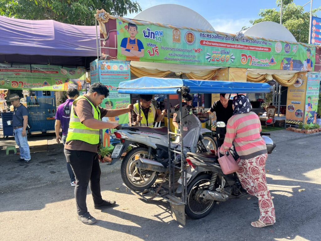 แรงงานไทย และประชาชน นำรถยนต์ และรถจักรยานยนต์เข้ารับบริการตรวจเช็กสภาพรถ ก่อนเดินทางกลับภูมิลำเนา และท่องเที่ยวช่วงก่อนและระหว่างเทศกาลปีใหม่กว่า 4 พันคัน ตามโครงการ Drive Safe D เช็กชัวร์ ก่อนเดินทาง ซึ่งเป็นของขวัญปีใหม่ของกรมพัฒนาฝีมือแรงงานที่มอบให้ในปี 2569