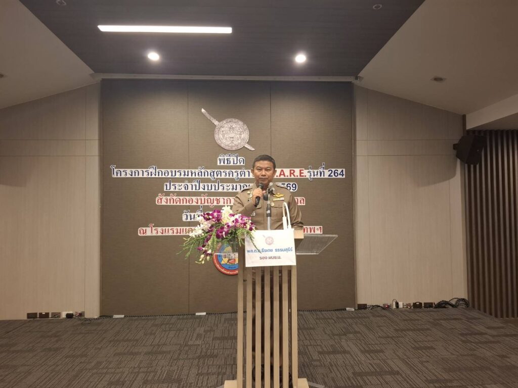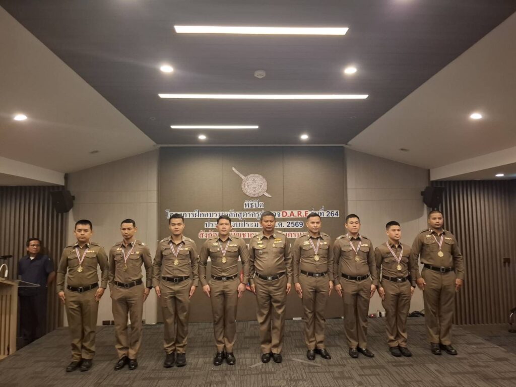 วันที่ 23 ม.ค. 2569 ที่โรงแรมแคนทารี เฮาส์ รามคำแหง กรุงเทพมหานคร พล.ต.ต.ธีรเดช ธรรมสุธีร์ รองผู้บัญชาการตำรวจนครบาล ในฐานะผู้รับผิดชอบงานยาเสพติด และรอง ผอ.ศอ.ปส.บช.น. เป็นประธานในพิธีปิดโครงการฝึกอบรม “ครูตำรวจ D.A.R.E.” (Drug Abuse Resistance Education) รุ่นที่ 264 ประจำปีงบประมาณ 2569 ตามนโยบายของ พล.ต.ท.สยาม บุญสม ผู้บัญชาการตำรวจนครบาล เพื่อยกระดับการป้องกันยาเสพติดในกลุ่มเด็กและเยาวชนอย่างเป็นระบบ