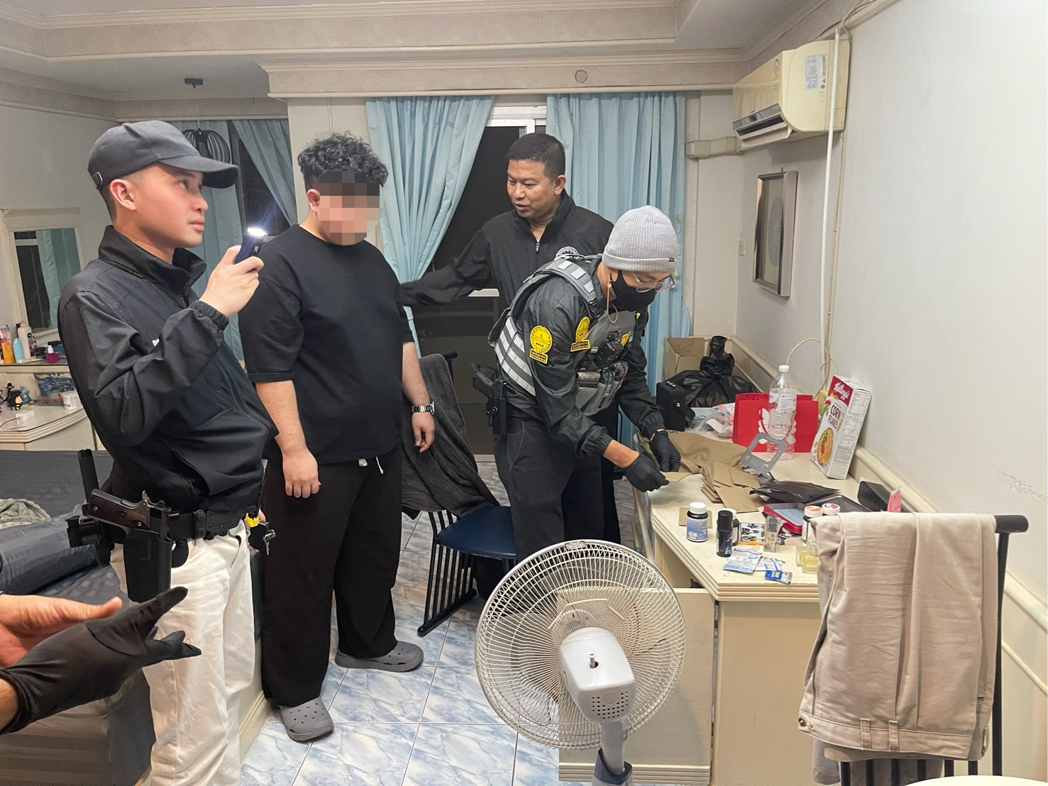 เมื่อวันที่ 23 ม.ค. 69 พล.ต.อ.กิตติ์รัฐ พันธุ์เพ็ชร์ ผบ.ตร. สั่งการให้ พล.ต.อ.สำราญ นวลมา รอง ผบ.ตร. , พล.ต.ท.สมประสงค์ เย็นท้วม ผู้ช่วย ผบ.ตร. , พล.ต.ท.อาชยน ไกรทอง ผบช.ปส. , พล.ต.ท.สยาม บุญสม ผบช.น. , พล.ต.ต.ธีรเดช ธรรมสุธีร์ รอง ผบช.น. , พล.ต.ต.นพสิทธิ์ มิตรภักดี ผบก.ปส.1 พล.ต.ต.โชติวัฒน์ เหลืองวิลัย ผบก.สส.บช.น. , พ.ต.อ.วรพจน์ รุ่งกระจ่าง รอง ผบก.สส.บช.น. พร้อมกำลังเจ้าหน้าที่ตำรวจ ศอ.ปส.ตร. , ศอ.ปส.บช.น. , บก.สส.บช.น. , บช.ปส. และ บูรณาการร่วมกับ พันตํารวจตรี สุริยา สิงหกมล เลขา ปปส .เจ้าหน้าที่ ป.ป.ส. นำโดย นายปฤณ เมฆานันท์ ผอ.ปปส.กทม. , นายอดิเรก อ่อนละมูล ผอ.บก. นายคณิศร ภาพีรนนท์ผู้อำนวยการสำนักปราบปรามยาเสพติด , นายจารุวัฒน์ ทองแจ้ง ผอ.ปป.1 ร่วมสนธิกำลังเพื่อปฏิบัติการ สืบสวนติดตามจับกุมตัวผู้ต้องหาทั้งสิ้น 4 ราย ดังนี้