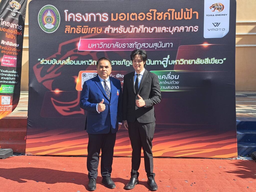 วันที่ 23 ม.ค.2569 ณ มหาวิทยาลัยราชภัฏสวนสุนันทา เขตดุสิต กรุงเทพมหานคร : มหาวิทยาลัยราชภัฏสวนสุนันทา เดินหน้ายกระดับสวัสดิการบุคลากรทางการศึกษาและนักศึกษา ลงนามบันทึกข้อตกลงความร่วมมือ (MOU) กับ บริษัท โทระ เอ็นเนอร์จี้ จำกัด เปิด “โครงการสิทธิพิเศษรถจักรยานยนต์ไฟฟ้า” มอบทางเลือกการเดินทางที่ประหยัด ปลอดภัย และเป็นมิตรต่อสิ่งแวดล้อม พร้อมสิทธิประโยชน์ที่เหนือกว่าการซื้อทั่วไปอย่างชัดเจน