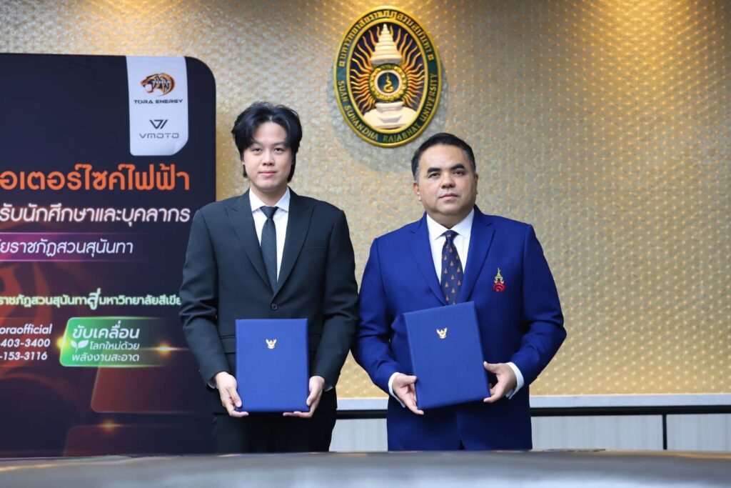 พิธีลงนามจัดขึ้นเมื่อวันศุกร์ที่ 23 มกราคม 2569 ณ ห้องประชุมสภามหาวิทยาลัย อาคาร 31 มหาวิทยาลัยราชภัฏสวนสุนันทา โดยมี รองศาสตราจารย์ ดร.คมสัน โสมณวัตร รองอธิการบดีฝ่ายบริหาร มหาวิทยาลัยราชภัฏสวนสุนันทา และ นายนครินทร์ วลัยวิทย์ กรรมการผู้จัดการ บริษัท โทระ เอ็นเนอร์จี้ จำกัด พร้อมด้วย นางสาวพัชร์สิตา พิมพ์อภิวานิช ประธานเจ้าหน้าที่ฝ่ายการตลาด บริษัท โทระ เอ็นเนอร์จี้ จำกัด,Mr.Adam Cui ตำแหน่ง Chief Operating Officer (COO) บริษัท วีโมโต (ไทยแลนด์) จำกัด ผู้บริหารของทั้งสองหน่วยงานร่วมเป็นสักขีพยาน สะท้อนความร่วมมือระหว่างภาคการศึกษาและภาคเอกชนในการดูแลคุณภาพชีวิตของ “ครอบครัวสวนสุนันทา” อย่างยั่งยืน