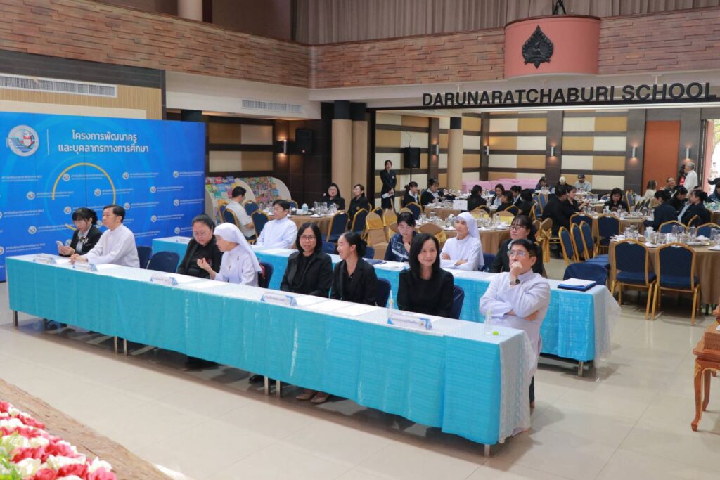 บาทหลวง ผศ.ดร.อภิสิทธิ์ กฤษเจริญ ผู้อำนวยการฝ่ายอบรมศึกษาสังฆมณฑลราชบุรี กล่าวถึงจุดประสงค์และที่มาของการทำบันทึกความเข้าใจ (MOU) ความร่วมมือทางวิชาการครั้งนี้ ว่า เกิดจากแนวคิดร่วมกันของผู้บริหารโรงเรียนในสังกัดสังฆมณฑลราชบุรี ที่เห็นตรงกันว่าการบริหารจัดการศึกษาไทยในยุคปัจจุบันของโรงเรียนเอกชน เต็มไปด้วยความท้าทายและความเสี่ยง ทั้งด้านจำนวนนักเรียนที่ลดลง ด้านความผันผวนทางเศรษฐกิจ รวมถึงพิษภัยของสื่อโซเชียล และที่สำคัญ คือ การพัฒนาสมรรถนะและกระบวนทัศน์การจัดการเรียนรู้ให้กับผู้เรียนยุคปัจจุบัน ซึ่งที่ผ่านมาหลายโรงเรียนได้ขยับปรับเปลี่ยนตนเองแล้ว รวมถึงโรงเรียนดรุณาราชบุรี ที่ถูกยกให้เป็นต้นแบบของการจัดการเรียนรู้แบบ Active Learning ในยุค Ai ดังนั้น หากโรงเรียนในสังกัดสังฆมณฑลราชบุรี ซึ่งมีสถานศึกษาในการกำกับดูแลทั้งหมด 17 แห่ง ได้ผนึกกำลังเพื่อขับเคลื่อนสถานศึกษาไปด้วยกัน โดยมีสถาบันพัฒนาคุณภาพวิชาการ (พว.) ผ่านทาง ดร.ศักดิ์สิน โรจน์สราญรมย์ ประธานกรรมการบริหารสถาบันพัฒนาคุณภาพวิชาการ และทีมงาน คอยดูแลสนับสนุนอย่างต่อเนื่อง ซึ่งในเบื้องต้นมีโรงเรียนในสังกัดสังฆมณฑลราชบุรี จำนวน 12 แห่ง ได้มาลงนามความร่วมมือทางวิชาการร่วมกับสถาบันพัฒนาคุณภาพวิชาการ (พว.) ในวันนี้ ได้แก่ โรงเรียนดรุณาราชบุรี โรงเรียนดรุณาราชบุรีวิเทศศึกษา โรงเรียนเรืองวิทย์พระหฤทัย โรงเรียนดำเนินวิทยา โรงเรียนวันทามารีอาราชบุรี โรงเรียนเทพินทร์พิทยา โรงเรียนวังตาลวิทยา โรงเรียนเทพวิทยา โรงเรียนอนุชนศึกษา โรงเรียนวีรศิลป์ โรงเรียนดรุณากาญจนบุรี และ โรงเรียนสารสาสน์วิเทศสมุทรสงคราม