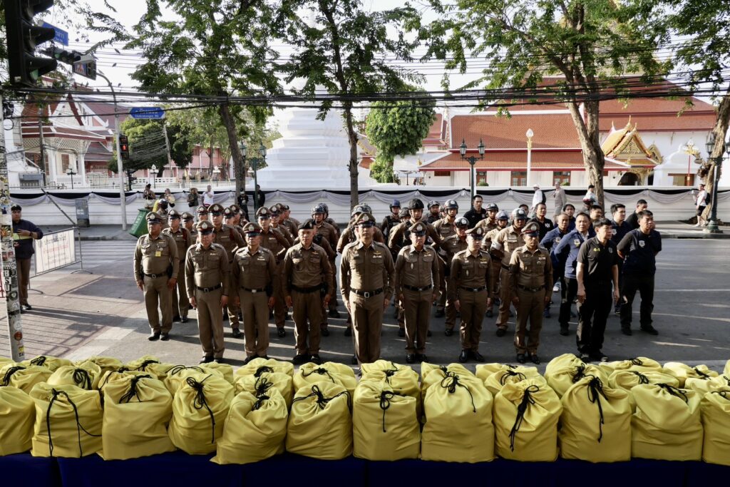 โดยมอบถุงยังชีพ และเงินบำรุงขวัญ ให้ตำรวจได้รับบาดเจ็บ พ.ต.ท.อาคม วงสามารถ สว.อก.สน.ชนะสงคราม เส้นเลือดในสมองแตก และ ร.ต.ท.สาธิต สังข์ทอง รองสว.จร.สน.ชนะสงคราม รถชนบนสะพานพระปิ่นเกล้า รักษาตัวอยู่ รพ.ศิริราช และร่วมมอบถุงยังชีพ ข้าวสาร ไข่ไก่ ให้เจ้าหน้าที่ตำรวจ สน.ชนะสงคราม 170 นาย