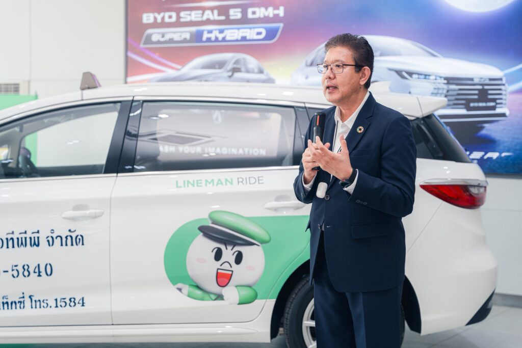 บริษัท ไอทีพีพี จำกัด (ITPP) ผู้เชี่ยวชาญด้านการลงทุนพลังงานสะอาดและยานยนต์ไฟฟ้า ประกาศความร่วมมือกับ บริษัท ไลน์แมน (ประเทศไทย) จำกัด ผู้นำแพลตฟอร์มดิจิทัลด้านบริการเรียกรถและเดลิเวอรีของไทย เปิดตัวโครงการ “LINE MAN EV” โครงการแท็กซี่ไฟฟ้า 100% โดยนำร่องรถยนต์ไฟฟ้า BYD รุ่น E6 จำนวน 50 คัน ให้บริการในเขตกรุงเทพมหานคร เพื่อยกระดับระบบขนส่งสาธารณะสู่สังคมคาร์บอนต่ำอย่างยั่งยืน พร้อมเปิดรับผู้ขับขี่เข้าร่วมโครงการอย่างเป็นทางการ