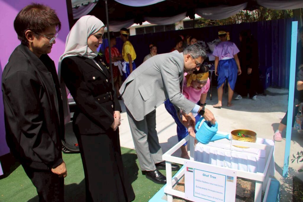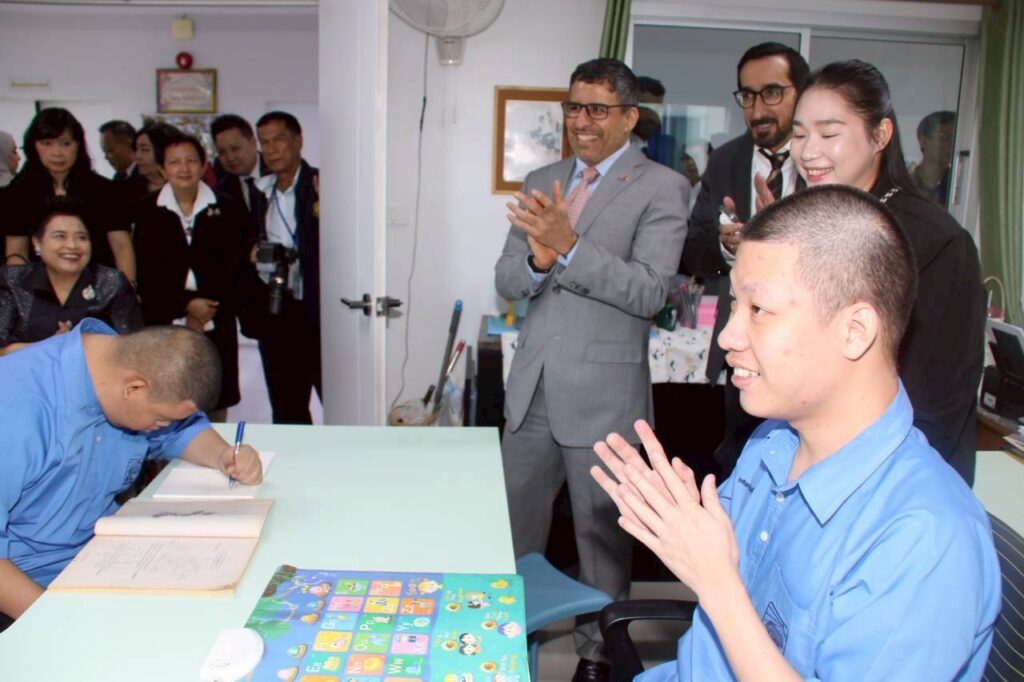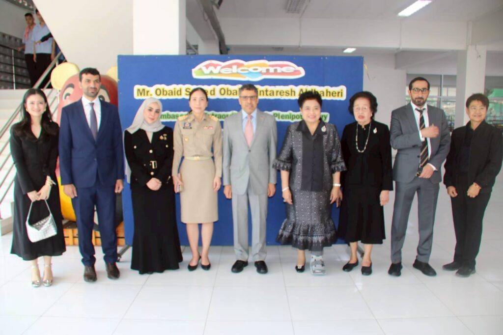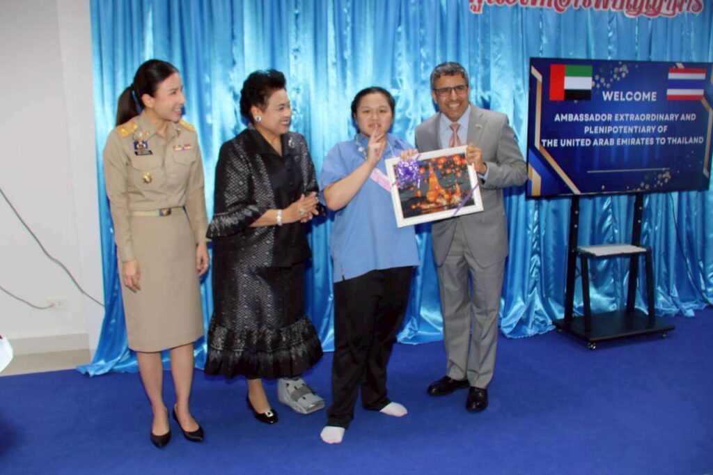 วันที่ 28 มกราคม 2569 : ฯพณฯ ท่าน อุบัยด์ ซะอีด อุบัยด ์บินฏอริช อัลฎอฮิรี เอกอัครราชฑูต สหรัฐอาหรับเอมิเรตส์ ประจำประเทศไทย เป็นประธานในพิธีเปิด โครงการฟาร์มเห็ด ซึ่งสถานฑูตสหรัฐอาหรับเอมิเรตส์ ประจำประเทศไทยให้การสนับสนุนการก่อสร้างจำนวนเงิน 2,849,900 บาท เพื่อส่งเสริมพัฒนาทักษะ ฝึกอาชีพอย่างครบวงจรแก่ผู้พิการทางสติปัญญา โดยมี นางสายสม วงศาสลักษณ์ ประธานมูลนิธิช่วยคนปัญญาอ่อน แห่งประเทศไทย ในพระบรมราชินูปถัมภ์,นางสาว ปาณิสรา กาญจนะจิตรา รองผู้ว่าราชการจังหวัดนนทบุรี,นางสาว สุนีย์ ศรีสง่าตระกูล รองปลัดกระทรวงพัฒนาสังคมและความมั่นคงของมนุษย์,นางกันยา ไชยเศรษฐ์ ประธานศูนย์ฝึกอาชีพปัญญาคาร พร้อมด้วย คณะกรรมการบริหารมูลนิธิฯ,ชมรมครูผู้ปกครองฯ ให้การต้อนรับ และ ร่วมในพิธี ณ ศูนย์ฝึกอาชีพปัญญาคาร อำเภอปากเกร็ด จังหวัดนนทบุรี