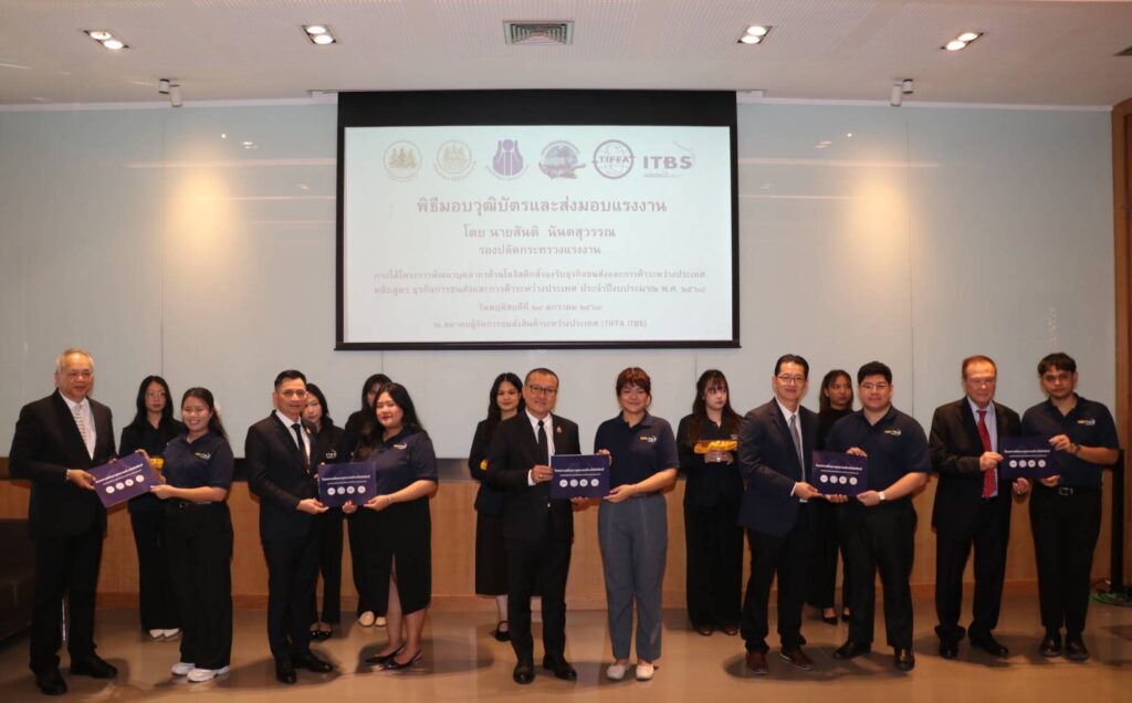 เมื่อวันที่ 29 มกราคม 2569 รัฐมนตรีว่าการกระทรวงแรงงาน มอบหมายนายสันติ นันตสุวรรณ รองปลัดกระทรวงแรงงาน เป็นประธานมอบวุฒิบัตรให้แก่ผู้ผ่านการฝึกอบรมหลักสูตรธุรกิจขนส่งและการค้าระหว่างประเทศ จำนวน 3 รุ่น 150 คน ภายใต้โครงการพัฒนาบุคลากรด้านโลจิสติกส์รองรับธุรกิจขนส่งและการค้าระหว่างประเทศ โดยมีนายสมชาติ สุภารี รองอธิบดีกรมพัฒนาฝีมือแรงงาน และผู้บริหารกรมฯ ให้การต้อนรับ ณ สมาคมผู้รับจัดการขนส่งสินค้าระหว่างประเทศ เขตบางนา กรุงเทพฯ