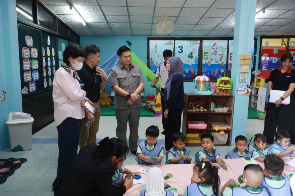 พันตำรวจตรี สุริยา สิงหกมล เลขาธิการ ป.ป.ส. พร้อมด้วย นางปะภาสี คัยนันท์ ผู้อำนวยการสำนักพัฒนาการป้องกันและแก้ไขปัญหายาเสพติด คณะผู้บริหาร และเจ้าหน้าที่ ป.ป.ส. ลงพื้นที่เยี่ยมชมกิจกรรมเสริมสร้างทักษะสมอง EF ในเด็กปฐมวัย ณ ศูนย์พัฒนาเด็กก่อนวัยเรียนชุมชนเอื้ออารีย์ เขตสวนหลวง กรุงเทพมหานคร