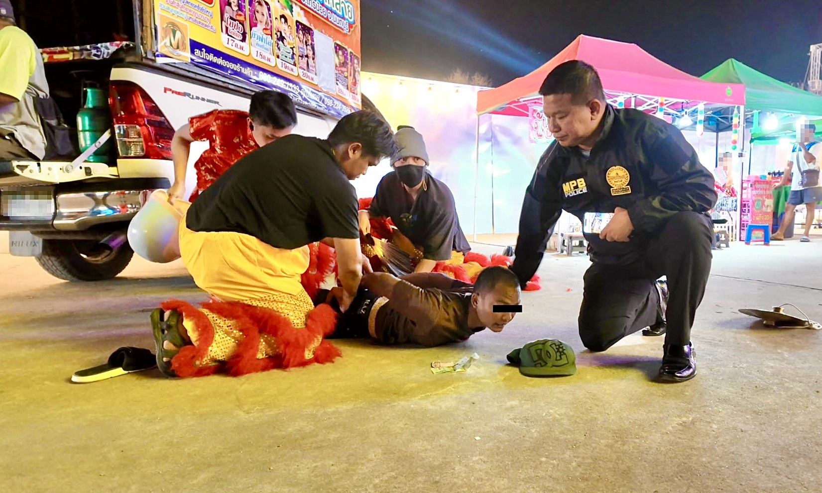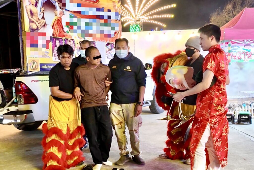 ทีมสืบสวนแกะรอยจาก “ของกลาง” ตามสืบจนพบเบาะแสว่าคนร้ายตระเวนขายพระย่านบางบัวทอง และมักนัดมั่วสุมยาในงานวัด กระทั่งวางแผนปลอมตัวเป็นคณะเชิดสิงโต แฝงตัวในงานวัดพื้นที่ไทรน้อย ก่อนค่อย ๆ ประชิดและล็อกตัวได้สำเร็จช่วงค่ำวันที่ 18 ก.พ.