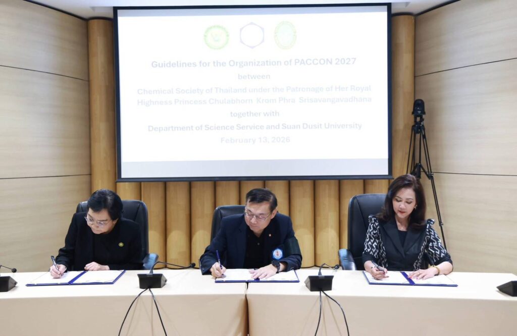 กรมวิทยาศาสตร์บริการ (วศ.) กระทรวงการอุดมศึกษา วิทยาศาสตร์ วิจัยและนวัตกรรม (อว.) ตอกย้ำบทบาทหน่วยงานวิทยาศาสตร์ของประเทศ นำทีมนักวิจัยเข้าร่วมการประชุมวิชาการระดับนานาชาติ The Pure and Applied Chemistry International Conference 2026 (PACCON 2026) ภายใต้หัวข้อ “The Global Future of Chemistry with AI” ระหว่างวันที่ 12–14 กุมภาพันธ์ 2569 ณ ศูนย์แสดงนิทรรศการและการจัดประชุมนานาชาติสมเด็จพระนเรศวรมหาราช จังหวัดพิษณุโลก