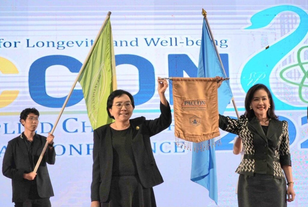 ดร.กนิษฐ์ ตะปะสา กล่าวว่า การเข้าร่วมประชุมวิชาการในครั้งนี้ นับเป็นเวทีสำคัญในการเผยแพร่ผลงานวิจัยของ วศ. สู่สายตานานาชาติ เป็นการสร้างโอกาสและขยายเครือข่ายความร่วมมือทางวิชาการ เพื่อสนับสนุนการพัฒนางานวิจัยและนวัตกรรมด้านเคมีอย่างยั่งยืน นอกจากนี้ตนเองในฐานะกรรมการบริหารสมาคมเคมีแห่งประเทศไทยฯ ยังได้เข้าร่วมการประชุมใหญ่สามัญของสมาคมเคมีแห่งประเทศไทย เพื่อร่วมกำหนดทิศทางการขับเคลื่อนวงการเคมีของประเทศอีกด้วย โดยเฉพาะอย่างยิ่งในปี 2570 สมาคมเคมีแห่งประเทศไทยฯ ได้มอบหมายให้กรมวิทยาศาสตร์บริการ และมหาวิทยาลัยสวนดุสิต ร่วมกันเป็นเจ้าภาพจัดงาน PACCON 2027 ภายใต้ห้วข้อ “Chemical Innovation Longevity and Well-being” ในช่วงวันที่ 11-13 กุมภาพันธ์ 2570 ณ กรุงเทพมหานคร