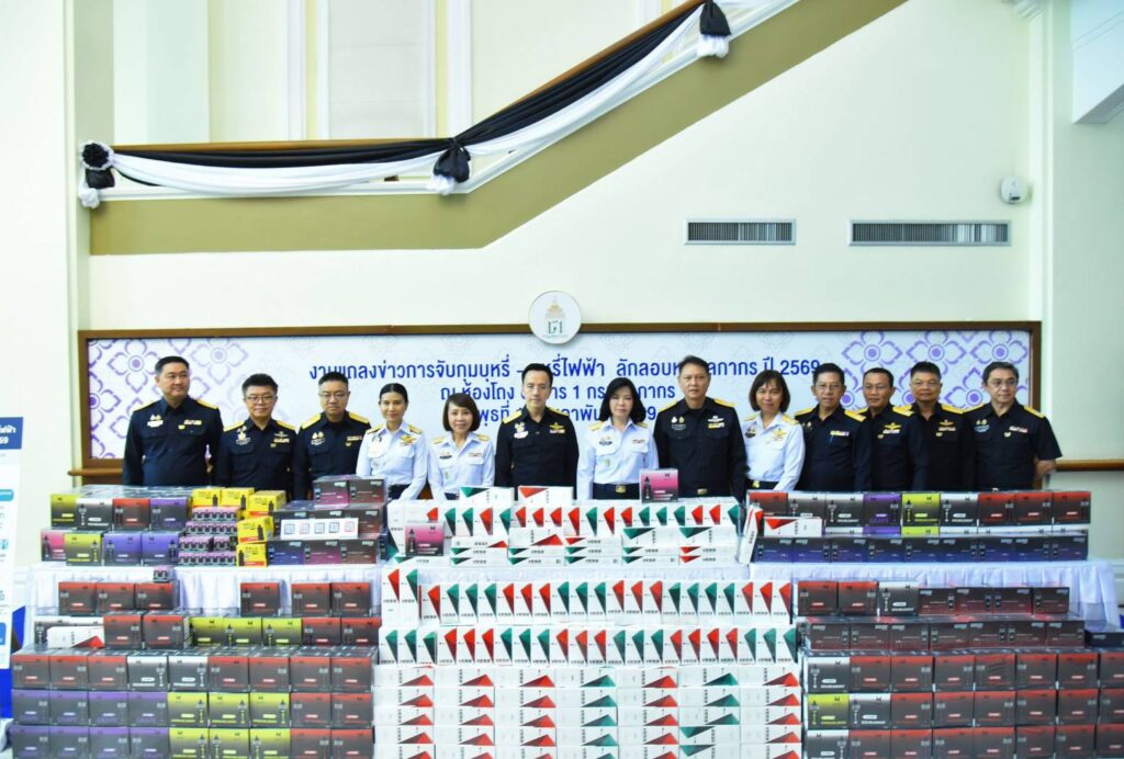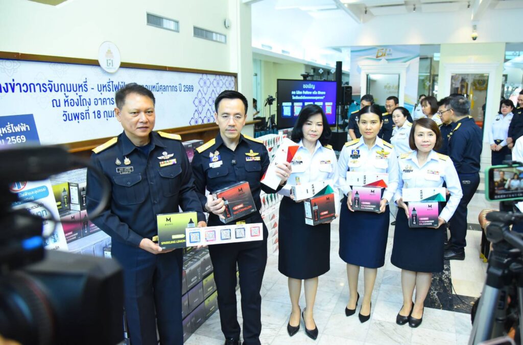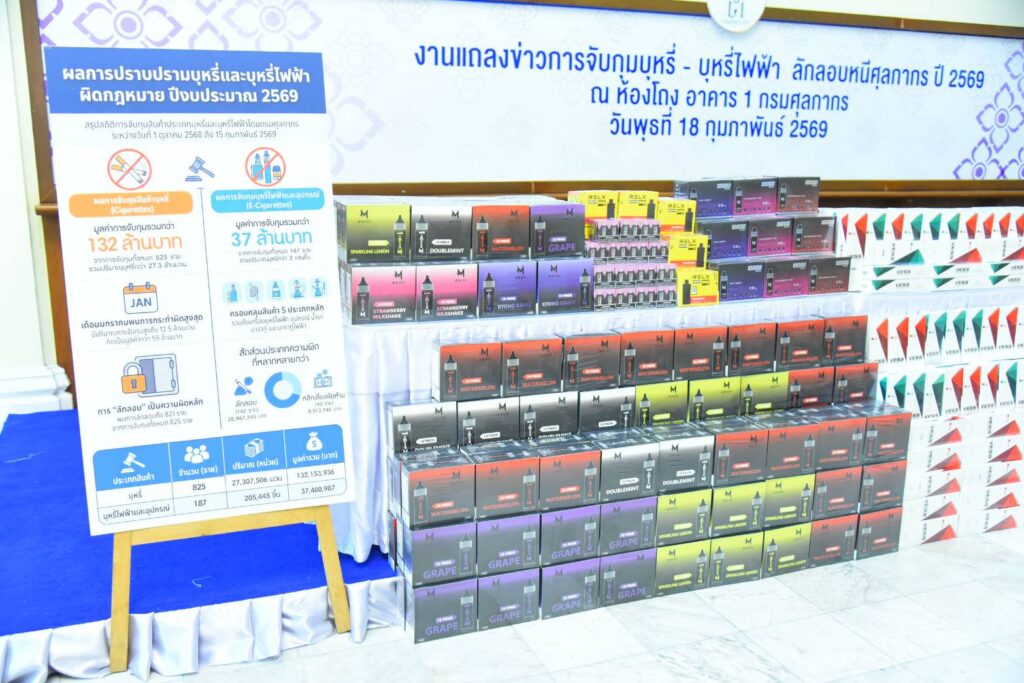 วันที่ 18 กุมภาพันธ์ 2569 เวลา 13.30 น. ณ อาคาร 1 ชั้น 1 กรมศุลกากร : นายพันธ์ทอง ลอยกุลนันท์ อธิบดีกรมศุลกากร พร้อมด้วย ผู้บริหารกรมศุลกากร แถลงข่าวการจับกุมบุหรี่-บุหรี่ไฟฟ้า ลักลอบนำเข้า มูลค่ากว่า 169 ล้านบาท