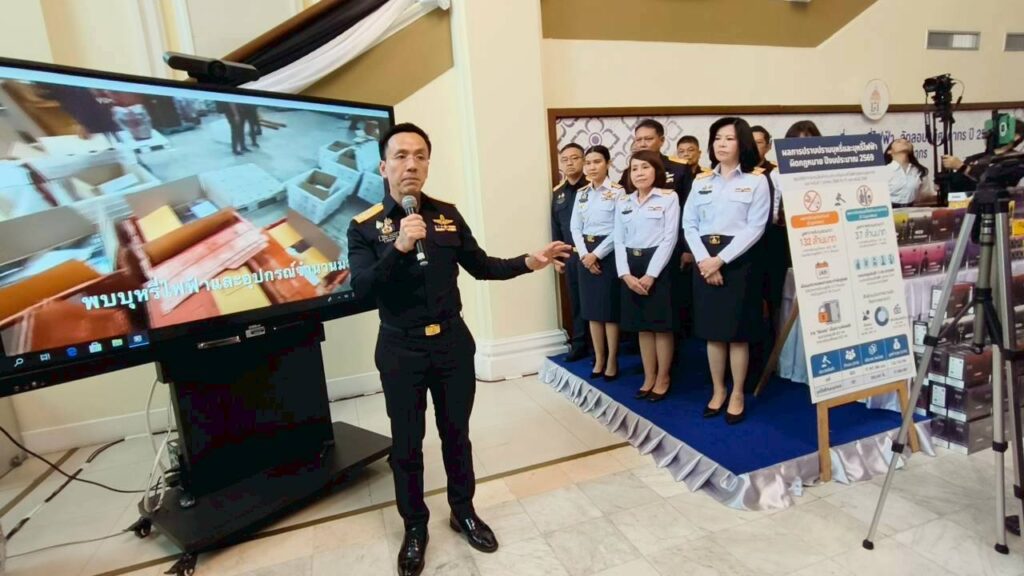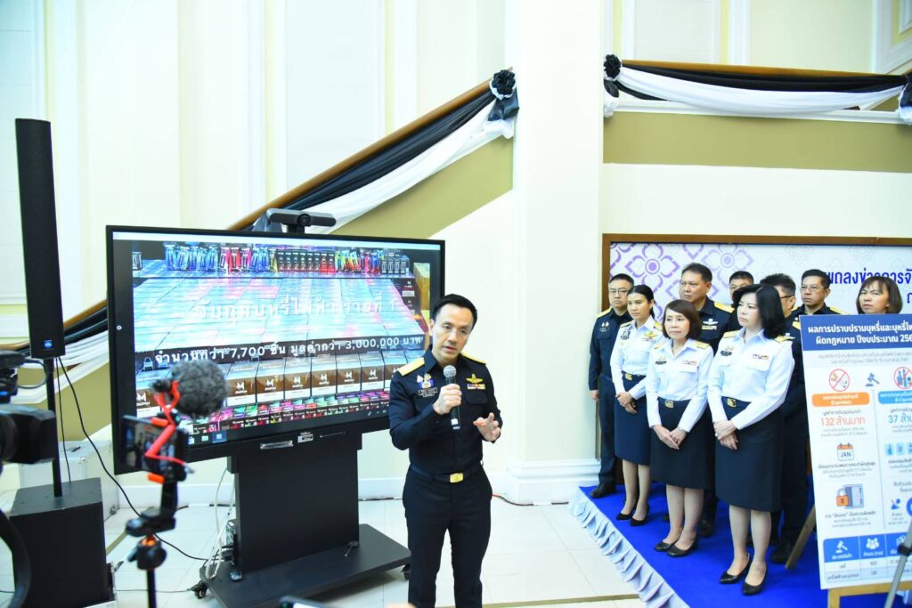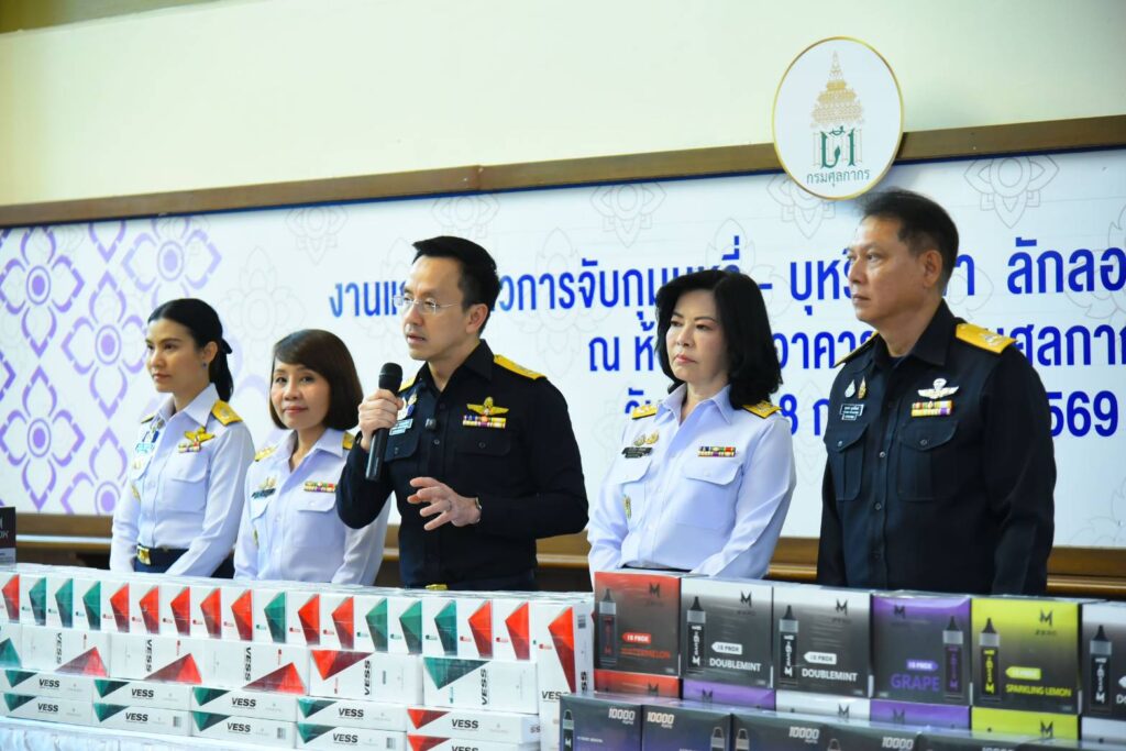 นายพันธ์ทอง ลอยกุลนันท์ อธิบดีกรมศุลกากร เปิดเผยว่า การดำเนินงานดังกล่าวเป็นไปตามนโยบายรัฐบาลในการปราบปรามสินค้าผิดกฎหมายโดยได้สั่งการให้ทุกหน่วยงานบูรณาการความร่วมมือกับหน่วยงานที่เกี่ยวข้องอย่างใกล้ชิด พร้อมเพิ่มความเข้มงวดในการปราบปรามสินค้าผิดกฎหมาย โดยเฉพาะอย่างยิ่งบุหรี่ต่างประเทศและบุหรี่ไฟฟ้า ซึ่งตั้งแต่เดือนตุลาคม 2568 ถึงวันที่ 15 กุมภาพันธ์ 2569 สามารถจับกุมบุหรี่ต่างประเทศรวมกว่า 27.3 ล้านมวน และบุหรี่ไฟฟ้าพร้อมอุปกรณ์กว่า 205,445 ชิ้น คิดเป็นมูลค่ารวม 169,634,923 บาท ซึ่งพฤติการณ์ส่วนใหญ่จะเป็นการลักลอบนำเข้าผ่านทางพัสดุไปรษณีย์ บริษัทขนส่งเอกชน และซุกซ่อนมาในยานพาหนะที่ใช้ในการขนส่ง นอกจากนี้ได้มีการขยายผลโดยบูรณาการร่วมกับกองบัญชาการตำรวจนครบาล สำนักงานคณะกรรมการป้องกันและปราบปรามยาเสพติด และหน่วยงานอื่นๆ เข้าตรวจค้นและจับกุมในโกดังและสถานที่พักอาศัย โดยมีผลงานจับกุมที่สำคัญดังนี้