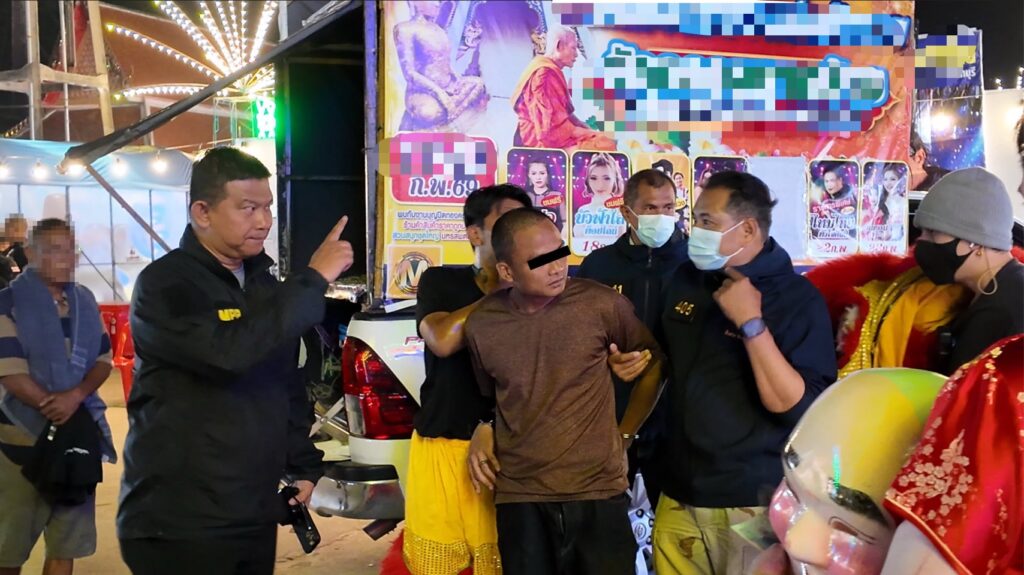 พล.ต.ต.ธีรเดชฯ สั่งการวางแผนการจับกุมด้วยแผนการพลางตัวสุดแยบยลเพื่อเข้าถึงตัวคนร้ายโดยมิให้รู้ตัว กระทั่งวันที่ 18 ก.พ.2569 ชุดสืบสวนสืบทราบว่าคนร้ายนัดหมายกับกลุ่มเพื่อนเพื่อจะไปมั่วสุมยาเสพติดตามวัด จึงวางแผนกระจายตามวัด โดยทีมสืบสวนปลอมตัวเป็นคณะเชิดสิงโตอยู่ในงานประจำปี ณ วัดชื่อดังแห่งหนึ่งใน ต.ไทรน้อย อ.ไทรน้อย จ.นนทบุรี เพื่อสังเกตการณ์ตามล่าคนร้าย กระทั่งช่วงค่ำ ทีมสืบสวนได้ไล่แสกนหน้าบุคคลภายในวัดพบกับชายต้องสงสัยใบหน้าคล้ายคนร้ายมาปรากฏตัวภายในวัด ครานี้ทีมสืบสวนจะไม่ปล่อยให้คนร้ายวิ่งหลบหนีได้อีก ทีมสืบสวนในบทบาทคณะสิงโตจึงค่อยๆ เชิดสิงโตเข้าไปใกล้ๆ กับคนร้าย จนประชิดตัวร้าย ก่อนล้อมรวบจับคนร้ายได้ในที่สุด โดยคนร้ายยังอยู่ในอาการงุนงง หลังจับกุมตรวจสอบพบว่าคนร้ายคือ นายอดิศักดิ์ หรือ โจโจ้ อายุ 33 ปี ตรวจพบว่าเคยต้องโทษคดีเกี่ยวกับ ยาเสพติด และ การลักทรัพย์ เป็นจำนวน 6 คดี จากการขยายผลชุดสืบสวนได้ยึดของกลางได้หลายรายการ และสืบทราบว่า นายอดิศักดิ์ฯ เป็นบุคคลที่ไม่มีทะเบียนราษฎร์เนื่องจากครอบครัวมิได้ไปแจ้งเกิด และใช้ชีวิตพเนจรมาตั้งแต่อายุเพียง 11 ปี อาศัยการลักเล็กขโมยน้อยเพื่อนำเงินไปซื้อยาเสพติดเสพ หลังจับกุมตัวได้นำตัวส่งพนักงานสอบสวน สน.ประชาชื่น เพื่อดำเนินคดีตามกฏหมายและทำการขยายผลเพื่อติดตามทรัพย์สินคืนผู้เสียหายต่อไป