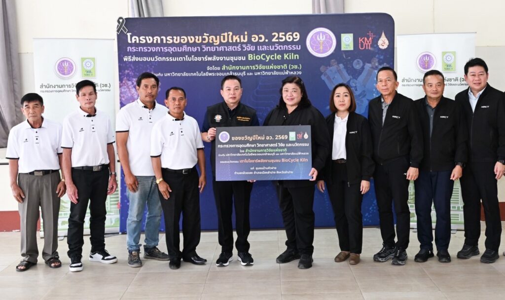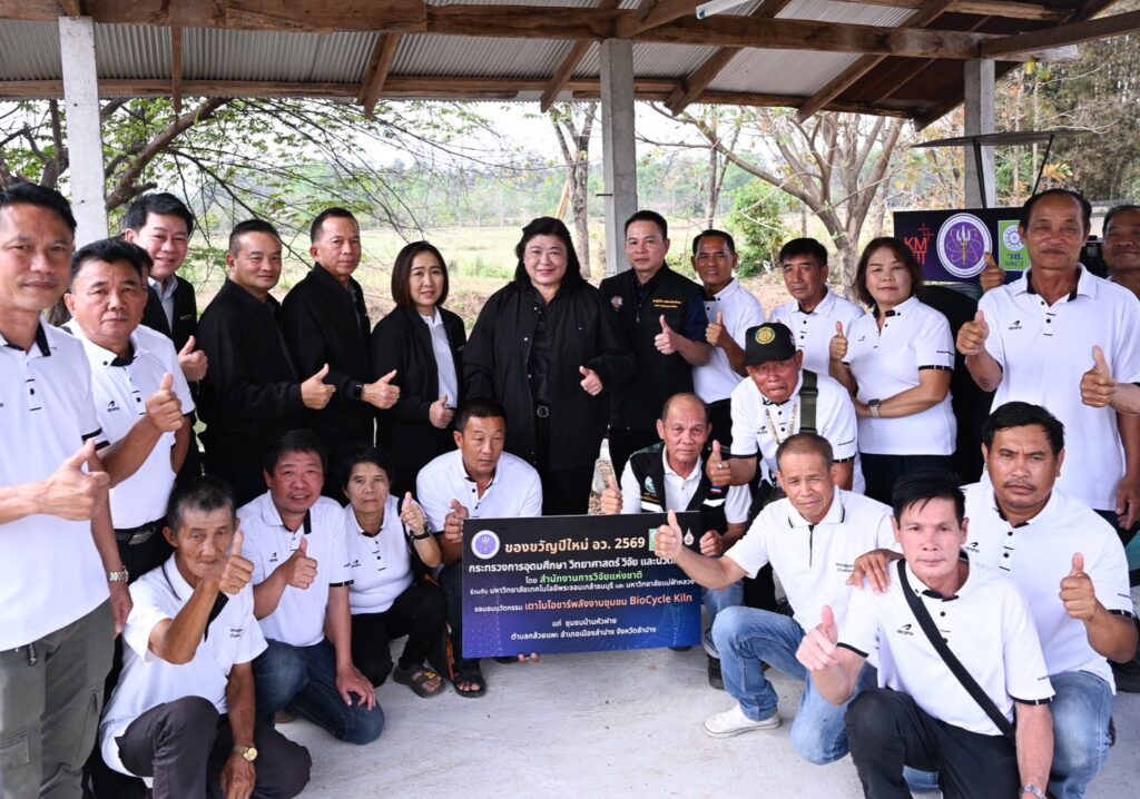 เมื่อวันที่ 22 กุมภาพันธ์ 2569 สำนักงานการวิจัยแห่งชาติ (วช.) กระทรวงการอุดมศึกษา วิทยาศาสตร์ วิจัยและนวัตกรรม (อว.) จัด “พิธีส่งมอบนวัตกรรมเตาไบโอชาร์พลังงานชุมชน BioCycle Kiln” ภายใต้โครงการของขวัญปีใหม่ อว. 2569 แก่ ชุมชนเจริญประเทศ ต.บ่อแฮ้ว จ.ลำปาง โดย ดร.วิภารัตน์ ดีอ่อง ผู้อำนวยการสำนักงานการวิจัยแห่งชาติ เป็นประธานในพิธี พร้อมด้วย รองศาสตราจารย์ ดร.อนรรฆ ขันธะชวนะ หัวหน้าโครงการวิจัย กล่าวรายงาน,นายปุณณสิน มณีนันทน์ นายกเทศมนตรีนครลำปาง กล่าวต้อนรับ,นางสาวศิรินทร์พร เดียวตระกูล ผู้อำนวยการสำนักงานการวิจัยแห่งชาติ คณะผู้ทรงคุณวุฒิ (วช.) ผู้นำท้องถิ่นและประชาชนในพื้นที่ เข้าร่วมพิธี ณ ชุมชนเจริญประเทศ ตำบลบ่อแฮ้ว อ.เมืองลำปาง จ.ลำปาง