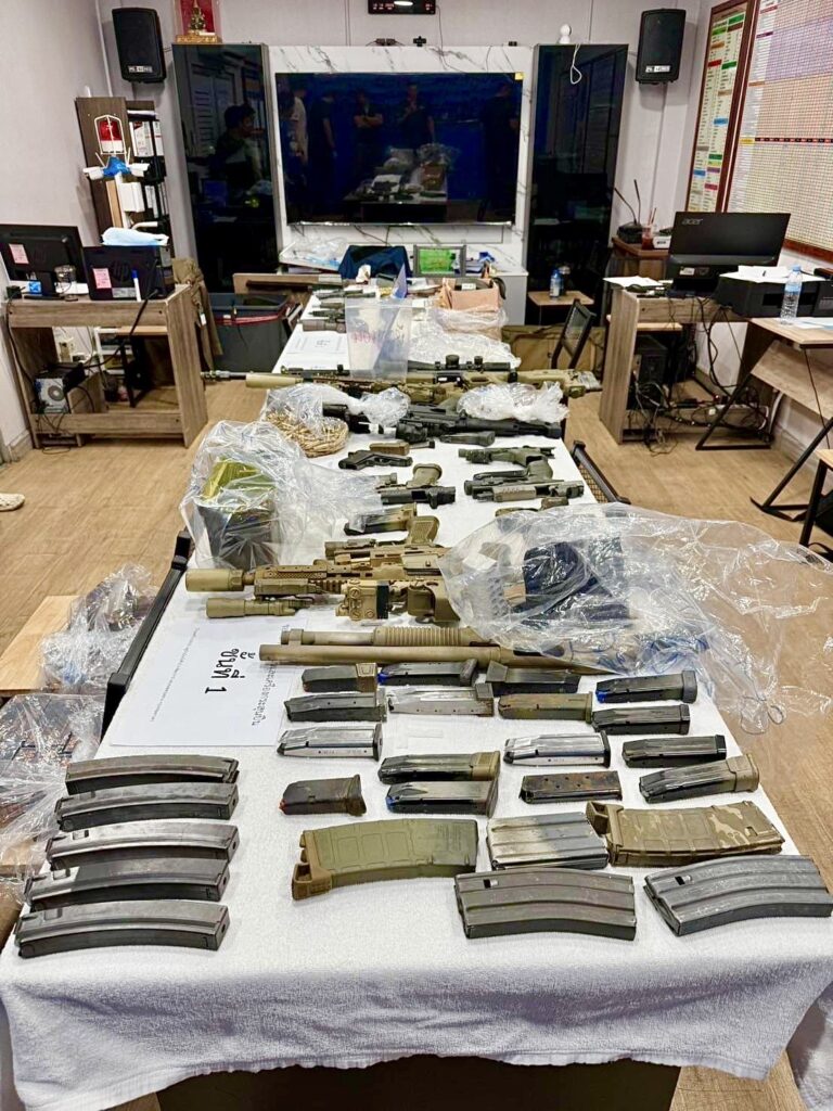 การตรวจค้นบ้านเลขที่ 1104/351 และ 1104/342 ภายในโครงการโนเบิล คิวบ์ แขวงสวนหลวง เขตสวนหลวง พบอาวุธปืนกว่า 20 กระบอก ทั้งปืนสั้น ปืนยาว ปืนกล พร้อมกระสุนนับพันนัด รวมถึงโคเคนและอุปกรณ์เสพยาอีกจำนวนมาก