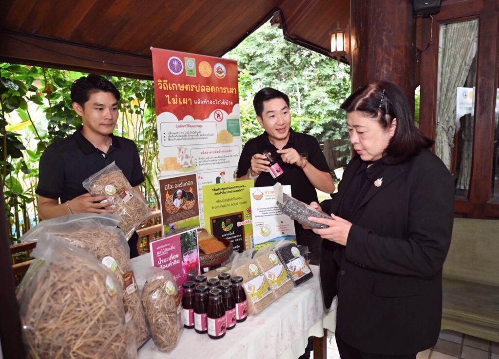 การดำเนินงานจึงเป็นต้นแบบระบบเกษตรปลอดการเผาแบบครบวงจร ตั้งแต่การจัดการแปลง การเพิ่มมูลค่าผลผลิต ไปจนถึงการเชื่อมโยงตลาด พร้อมทั้งมีการนำเสนอผลิตภัณฑ์จากงานวิจัย อาทิ BAC-BOOST และ Dual-Kill ชีวภัณฑ์กำจัดศัตรูพืช, บาร์-อัพ ชีวภัณฑ์ส่งเสริมการเจริญเติบโตของพืช,StrawX จากธนาคารจุลินทรีย์ชุมชน และ “เคลียร์ตอ” จุลินทรีย์สูตรเข้มข้น รวมถึงข้าวหอมมะลิและข้าวไรซ์เบอร์รี่ที่ได้รับการต่อยอดสู่สินค้าเกษตรปลอดการเผา สร้างมูลค่าเพิ่มทางการตลาดและยกระดับรายได้เกษตรกรด้านการเพิ่มโอกาสในการจำหน่ายในตลาดสีเขียวหรือส่งออกในตลาดต่างประเทศ