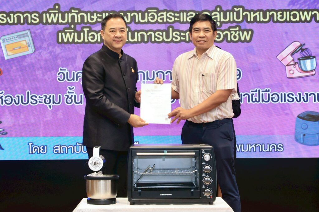 ด้านนายสมาสภ์ ปัทมะสุคนธ์ อธิบดีกรมพัฒนาฝีมือแรงงาน กล่าวเพิ่มเติมว่า สถาบันพัฒนาฝีมือแรงงาน 13 กรุงเทพมหานคร ได้รับจัดสรรเป้าหมายให้ดำเนินการโครงการเพิ่มทักษะแรงงานอิสระและกลุ่มเป้าหมายเฉพาะเพื่อเพิ่มโอกาสในการประกอบอาชีพ กิจกรรม พัฒนาทักษะแรงงานนอกระบบให้สอดคล้อง กับความสามารถเฉพาะบุคคลเพื่อการประกอบอาชีพ ประจำปีงบประมาณ พ.ศ.2569 เป้าหมาย 1,000 คน โดยเมื่อผ่านการอบรมแล้ว จะได้รับการสนับสนุนชุดเครื่องมือทำมาหากิน มูลค่า 4,000 บาทต่อคน เพื่อเป็นเครื่องมือในการสร้างโอกาสในการประกอบอาชีพ ซึ่งกรมพัฒนาฝีมือแรงงานได้จัดการฝึกอบรมไปแล้ว จำนวน 9 รุ่น รวม 180 คน ตั้งแต่เดือนพฤศจิกายน 2568 ถึง เดือน มกราคม 2569 โดยในวันนี้เป็นการมอบชุดเครื่องมือทำมาหากิน ให้แก่ผู้ผ่านการอบรม จำนวน 5 รุ่น รวมทั้งสิ้น 74 คน ในหลักสูตร การทำขนมเบเกอรี่มืออาชีพและหลักสูตร การประกอบอาหารสตรีทฟู้ด โดยชุดเครื่องมือที่มอบให้ ประกอบด้วย เตาอบไฟฟ้า เครื่องผสมอาหาร ชุดเตาแก๊สแรงดันสูงพร้อมอุปกรณ์ เตาปิ้งย่างแบบแก๊สพร้อมอุปกรณ์ หม้อทอดไร้น้ำมันไฟฟ้า ซึ่งผู้ผ่านการอบรมจะได้นำไปใช้ในการประกอบอาชีพต่อไป