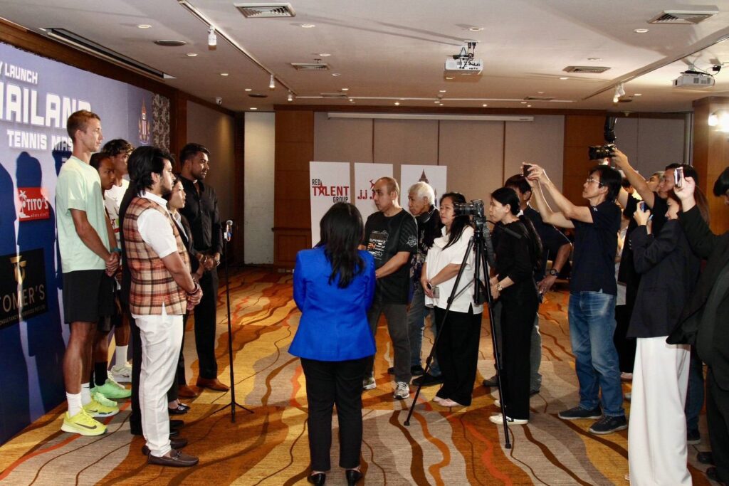 นางสาวนันท์นภัส นันตะสุข ผู้แทนกรรมการอำนวยการสมาคมกีฬาลอนเทนนิสฯ และ นายซาชิน โทมาร์ ผู้อำนวยการจัดการแข่งขัน บริษัท เรด ทาเลนต์ กรุ๊ป จำกัด ร่วมแถลงข่าวเปิดตัวการแข่งขันเทนนิสนานาชาติรายการใหญ่ “Jersey Launch : Thailand Tennis Masters 2026” (เจอร์ซีย์ ลันช์ : ไทยแลนด์ เทนนิส มาสเตอรส์ 2026) อย่างเป็นทางการ ที่ โรงแรม เอ็นเอช กรุงเทพ สุขุมวิท