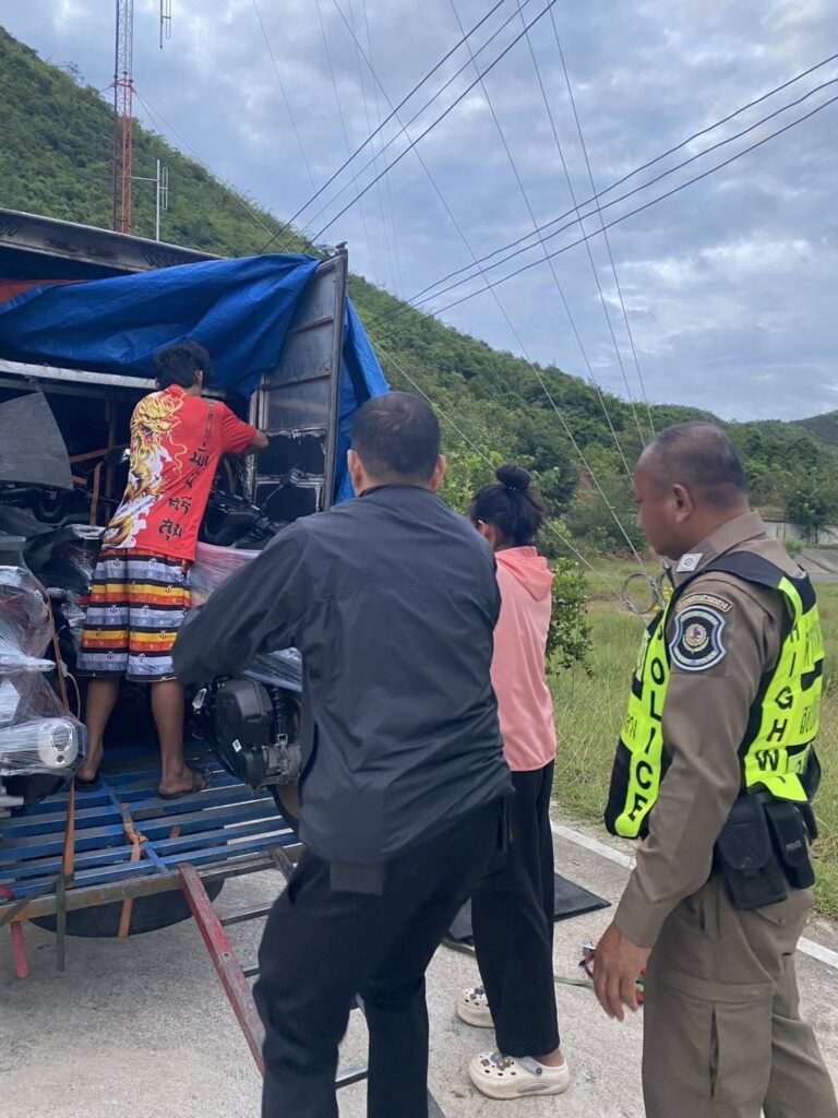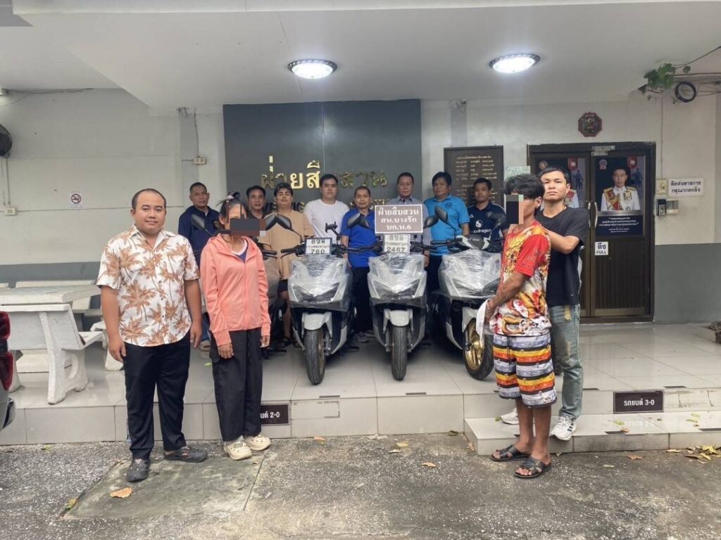 จากการตรวจค้น พบผู้ต้องหาคือ นายสรชน หรือ “แต้ม” นาคศรี อายุ 27 ปี เป็นคนขับ และนางสาวเจนจิรา หรือ “เจน” พรมทอง อายุ 30 ปี ภรรยา นั่งโดยสาร ด้านหลังภายในตู้ทึบมีรถจักรยานยนต์ 5 คัน ได้แก่ Honda Click สีเทา-ดำ ทะเบียน 8ขฬ 780 กทม. (แจ้งหาย สน.บางรัก) Honda Click สีเทา-ดำ ทะเบียน 9ขร 8716 กทม. (แจ้งหาย สน.ยานนาวา) Honda Click สีเทา-ดำ ทะเบียน 8ขล 2467 กทม. (แจ้งหาย สน.สุทธิสาร) Honda ADV สีเทา-ดำ ทะเบียน 9ขย 7373 กทม. (อยู่ระหว่างตรวจสอบ) และ Honda Click สีเทา-ดำ ไม่ติดป้ายทะเบียน (อยู่ระหว่างตรวจสอบ)