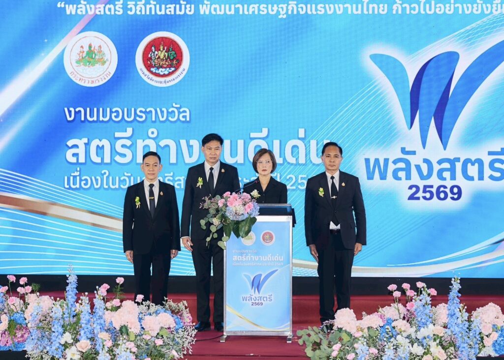 กรุงเทพฯ — วันที่ 6 มีนาคม 2569 กระทรวงแรงงานจัดงานใหญ่เนื่องในวันสตรีสากล ประจำปี 2569 ณ โรงแรมมิราเคิล แกรนด์ คอนเวนชั่น โดยมี น.ส.ตรีนุช เทียนทอง รัฐมนตรีว่าการกระทรวงแรงงาน เป็นประธานมอบเกียรติยศแด่ 33 สตรีทำงานดีเด่น พร้อมประกาศศักดาความสำเร็จของสตรีไทยบนเวทีโลก หลังรายงาน UN Women ระบุชัด ไทยครองแชมป์สัดส่วนผู้บริหารหญิงสายการเงิน (CFO) สูงที่สุดในโลกถึง 43%