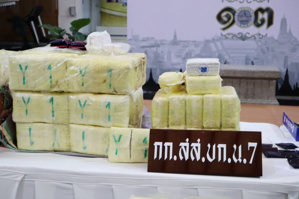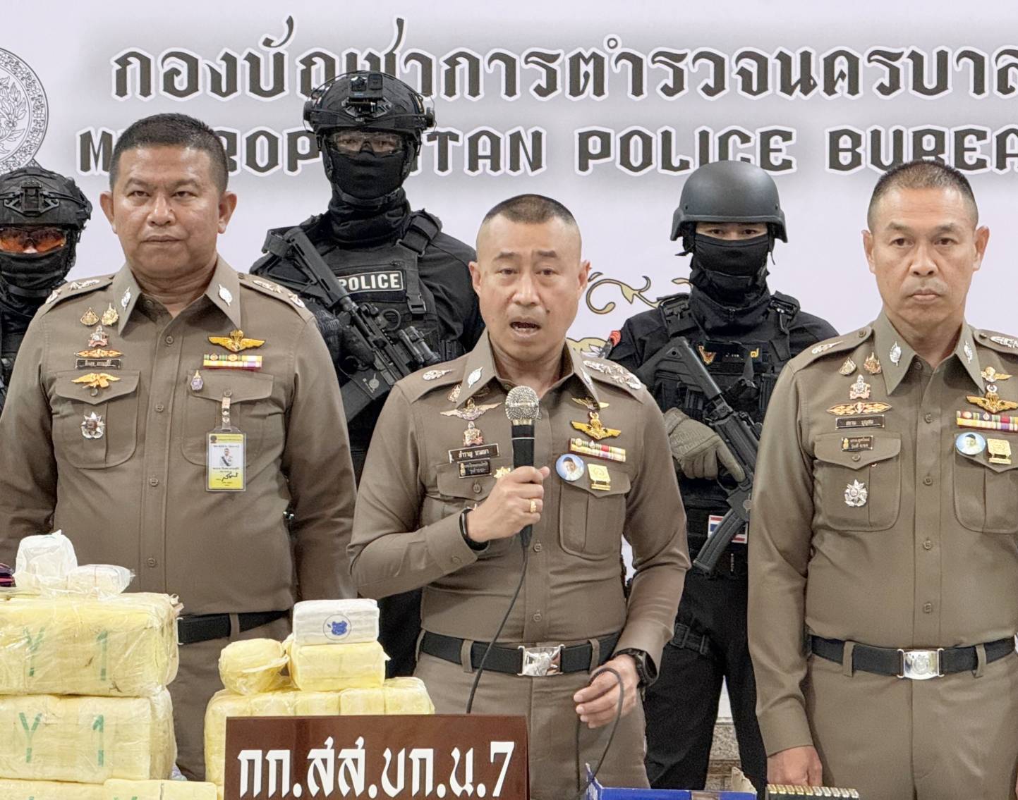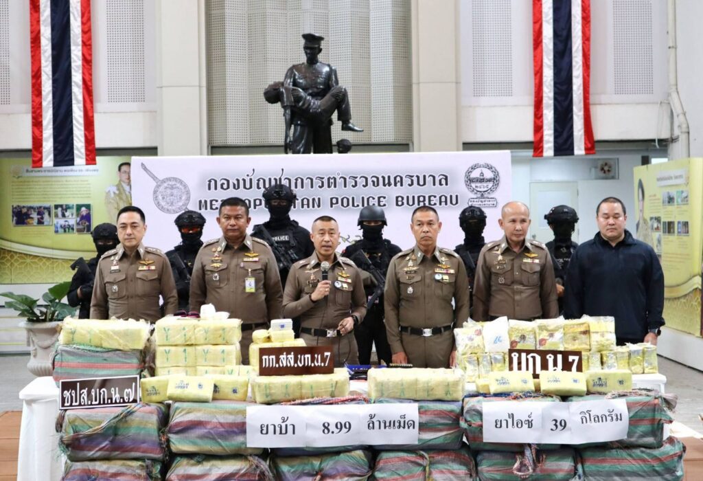 วันจันทร์ที่ 9 มีนาคม 2569 เวลา 14.00 น. ณ ลานอเนกประสงค์ บช.น.: พล.ต.อ.สำราญ นวลมา รอง ผบ.ตร. พร้อมด้วย พล.ต.ท.สยาม บุญสม ผบช.น.,พล.ต.ต.ธีรเดช ธรรมสุธีร์ รอง ผบช.น.,พล.ต.ต.ชัยยะ เพ็ชรปัญญา ผบก.น.7,พ.ต.อ.กุลเชษฐ์ บางพราน รอง ผบก.น.7,พ.ต.อ.อัษฎาวุธ ขวัญเมือง ผกก.สส.บก.น.7 ร่วมแถลงข่าว ผลการจับกุมของ สืบสวนนครบาล 7 ขยายผลทลายแหล่งพักยาเสพติด รวบหัวจ่ายก่อนทะลักเข้าเมืองหลวง พร้อมของกลางยาบ้า 8.99 ล้านเม็ดและ ไอซ์ 39 กิโลกรัม