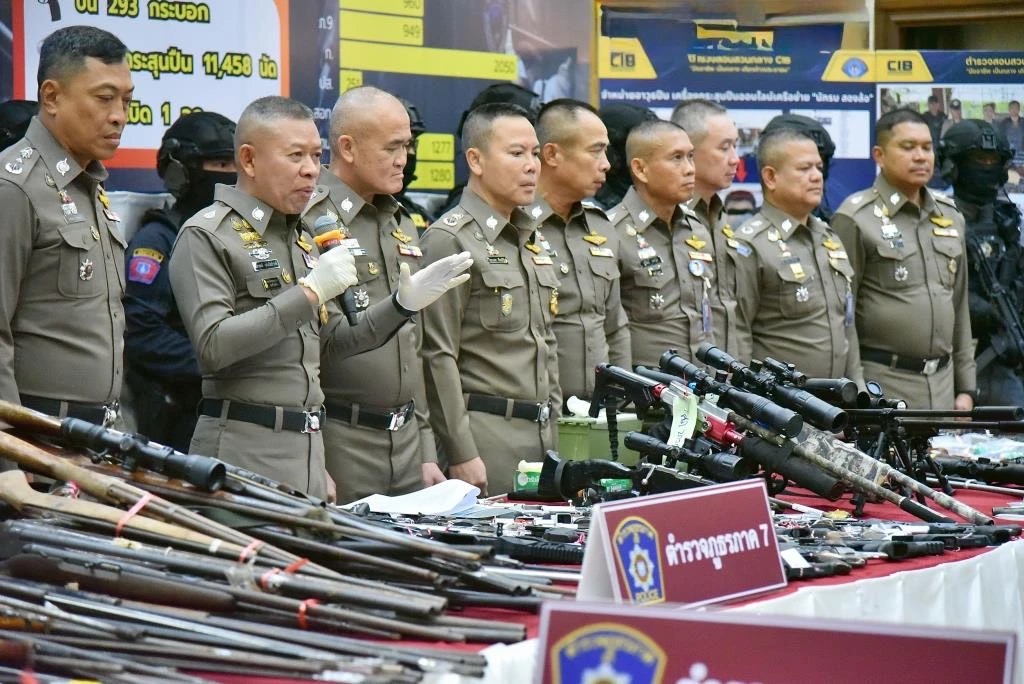 เมื่อวันที่ 26 ส.ค. ที่สำนักงานตำรวจแห่งชาติ พล.ต.อ.ธนายุตม์ วุฒิจรัสธำรงค์ ที่ปรึกษาพิเศษ ตร. พล.ต.ต.นพศิลป์ พูลสวัสดิ์ รอง ผบช.น. พร้อมด้วยผู้แทนจากกองบัญชาการตำรวจนครบาล, ตำรวจภูธรภาค 1-9, กองบัญชาการตำรวจสอบสวนกลาง, กองบัญชาการตำรวจปราบปรามยาเสพติด, สำนักงานตรวจคนเข้าเมือง, กองบัญชาการตำรวจสืบสวนสอบสวนอาชญากรรมทางเทคโนโลยี และกองบัญชาการตำรวจท่องเที่ยว แถลงผลการระดมกวาดล้างอาชญากรรม ระหว่างวันที่ 15–24 ส.ค. 2568 โดยมีเป้าหมายปราบปรามผู้กระทำผิดเกี่ยวกับอาวุธปืน วัตถุระเบิด และติดตามผู้ต้องหาตามหมายจับ