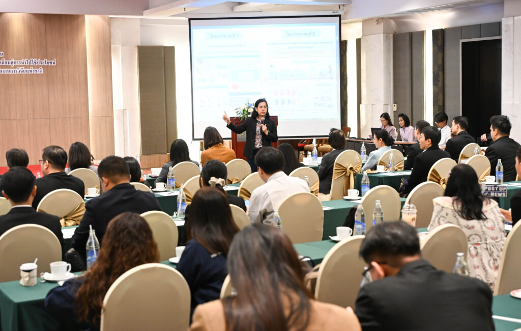 ดร.วิภารัตน์ ดีอ่อง ผู้อำนวยการสำนักงานการวิจัยแห่งชาติ (ผอ.วช.) กล่าวว่า การดำเนินงานแผนงาน “ศูนย์ขับเคลื่อนผลงานวิจัยด้านทรัพยากรธรรมชาติและสิ่งแวดล้อมสู่การนำไปใช้ประโยชน์” โดยมี รศ.ดร.นภาวรรณ นพรัตนราภรณ์ ผู้อำนวยการแผนงานฯ และคณะที่ปรึกษา ได้ดำเนินการประเมินผลลัพธ์ และผลกระทบของโครงการด้านทรัพยากรธรรมชาติและสิ่งแวดล้อมที่ได้รับทุนวิจัยจาก (วช.) มาอย่างต่อเนื่อง ตั้งแต่ปีงบประมาณ 2557 ซึ่งรูปแบบการให้ทุนมีการปรับเปลี่ยนตามการปฏิรูประบบวิจัย จุดเปลี่ยนที่สำคัญเริ่มในปีงบประมาณ 2562 จึงมีความจำเป็นต้องเชื่อมโยงโครงการในระยะก่อน โครงการปัจจุบัน และโครงการในอนาคต เพื่อนำไปขับเคลื่อนการใช้ประโยชน์ต่อไป โดยการประเมินการใช้ประโยชน์ และความคุ้มค่าด้วยกลไกต่างๆ นั้น มีความสำคัญ (วช.) ภายใต้กระทรวง (อว.) ในฐานะหน่วยงานบริหารจัดการทุนวิจัยและนวัตกรรม สามารถนำงานที่แล้วเสร็จจากทุนเดิมและจากทุนสนับสนุนงานเชิงกลยุทธ์. (Strategic Fund : SF) ที่มีอยู่นำไปต่อยอดขยายผลสู่แผนงานเป้าหมายสำคัญตามยุทธศาสตร์ (ววน.) ที่ริเริ่มในปีงบประมาณ 2568 ได้อย่างรวดเร็ว ซึ่งเกิดจากการทำงานอย่างต่อเนื่องมาก่อน (วช.) จึงมีความมุ่งมั่นที่จะสนับสนุนท่านนักวิจัย การดำเนินงานของศูนย์ฯ และงานด้านทรัพยากรธรรมชาติและสิ่งแวดล้อมอย่างต่อเนื่อง
