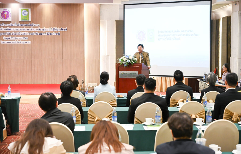 เมื่อวันที่ 27 สิงหาคม 2568 สำนักงานการวิจัยแห่งชาติ (วช.) กระทรวงการอุดมศึกษา วิทยาศาสตร์ วิจัยและนวัตกรรม (อว.) จัดการประชุมรับฟังความคิดเห็นต่อผลการดำเนินงานแผนงาน “ศูนย์ขับเคลื่อนผลงานวิจัยด้านทรัพยากรธรรมชาติและสิ่งแวดล้อมสู่การนำไปใช้ประโยชน์” โดย ดร.วิภารัตน์ ดีอ่อง ผู้อำนวยการสำนักงานการวิจัยแห่งชาติ (ผอ.วช.) เป็นประธานในการประชุม และได้รับเกียรติจาก ศ.ดร.สนิท อักษรแก้ว,รศ. ดร.นภาวรรณ นพรัตนราภรณ์,คณะที่ปรึกษา,ผู้ทรงคุณวุฒิ พร้อมด้วย ผู้บริหารจาก (วช.) และทีมนักวิจัย ณ ห้องทิวลิป โรงแรมรามาการ์เด้นส์ กรุงเทพมหานคร