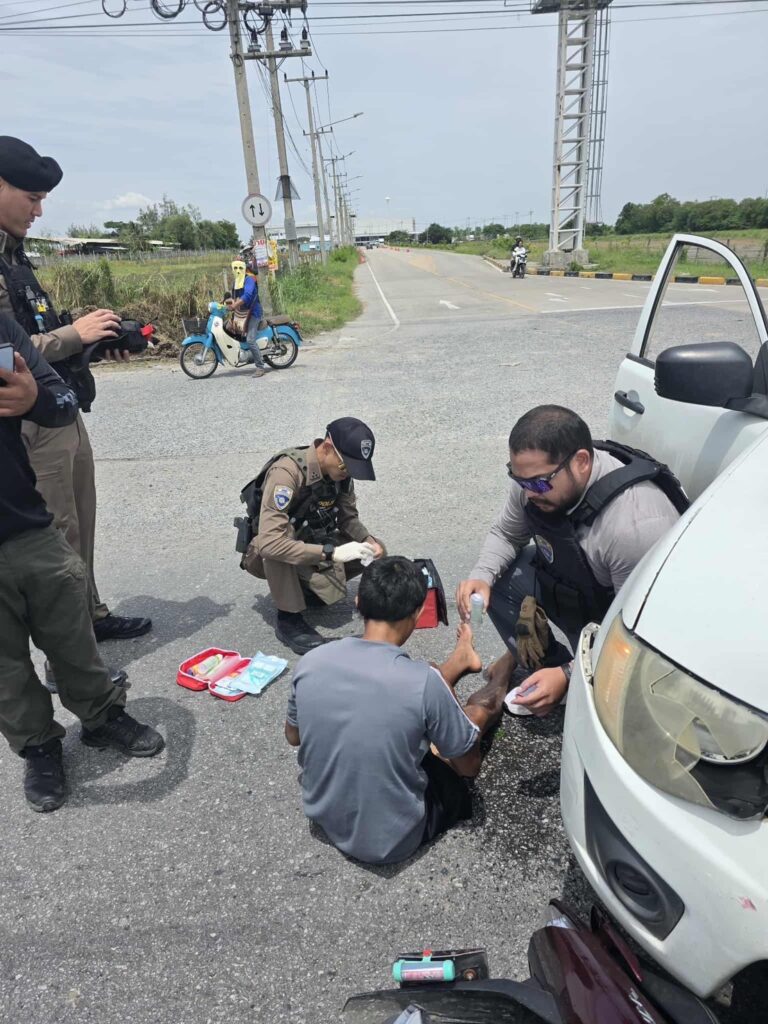 เมื่อวันที่ 30 ส.ค.2568 เจ้าหน้าที่ตำรวจสังกัด กองกำกับการสืบสวนสอบสวน บก.ตม.3 ขณะปฏิบัติหน้าที่ลงพื้นที่สืบสวนหาข่าวในพื้นที่รับผิดชอบ ได้พบประชาชนประสบอุบัติเหตุบนท้องถนน ได้รับบาดเจ็บ จึงรีบเข้าช่วยเหลือในทันที